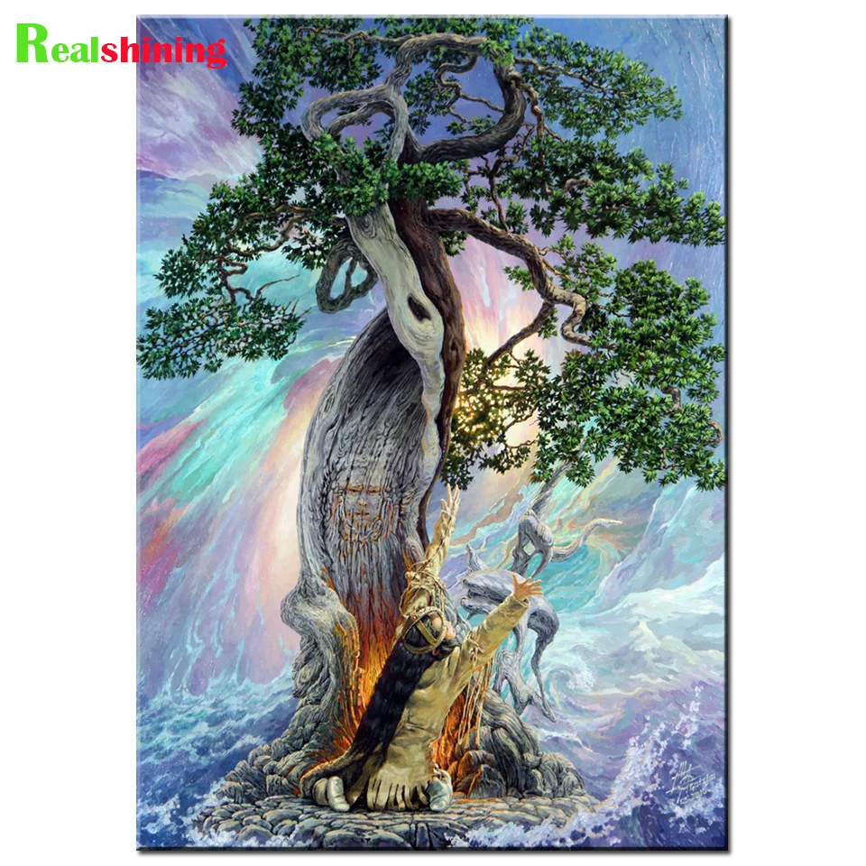 Алмазная живопись с фантазийным пейзажем 5D сделай сам, абстрактная вышивка крестиком с деревом, мозаика, полное сверление, вышивка стразами, домашний декор J73