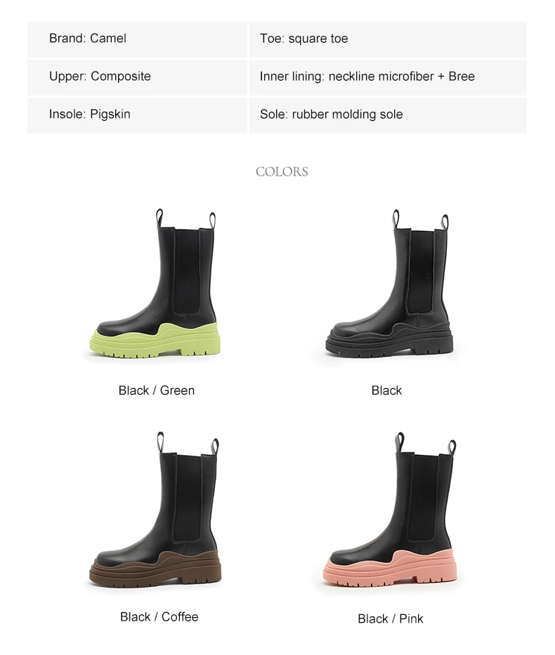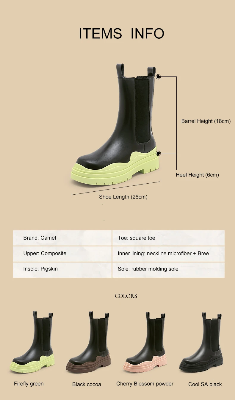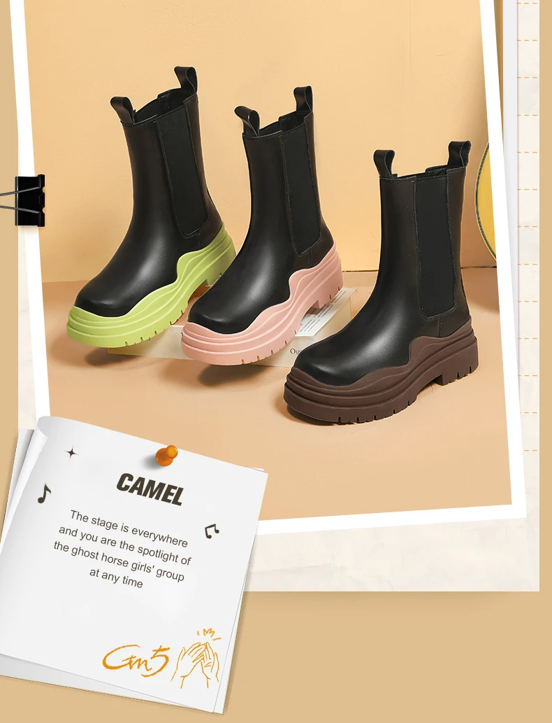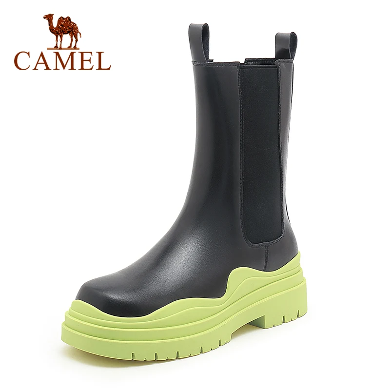 Женские ботинки челси на толстой подошве Camel, ботильоны без шнуровки в британском стиле, средней длины, на платформе, 2021