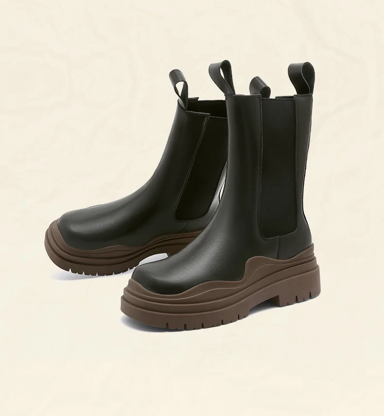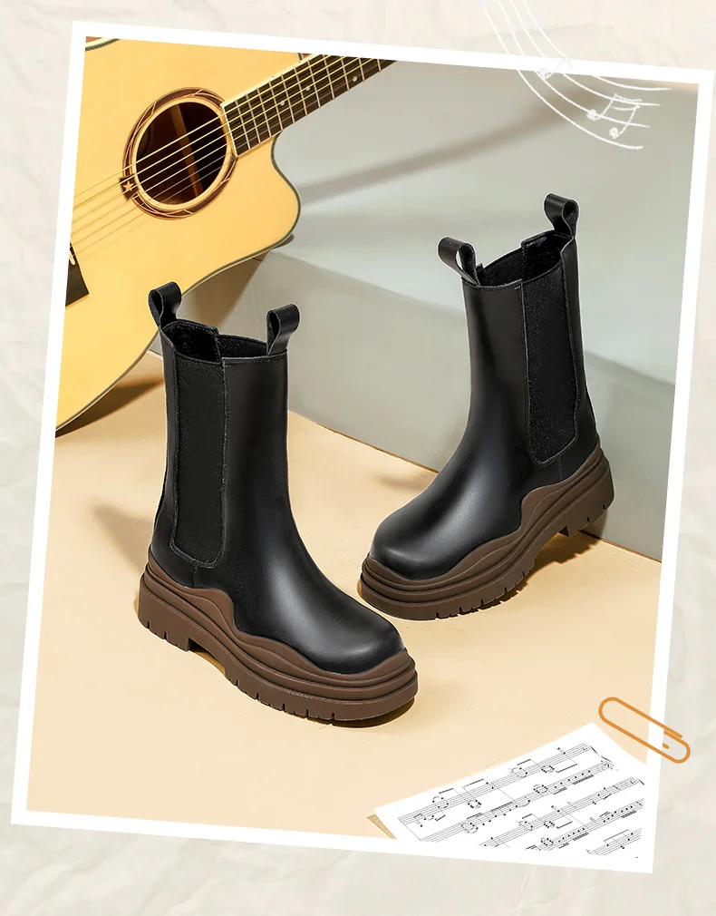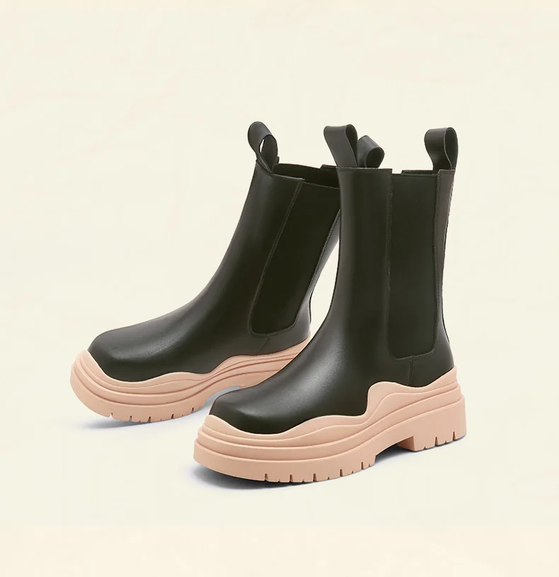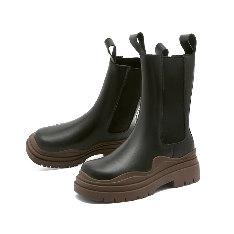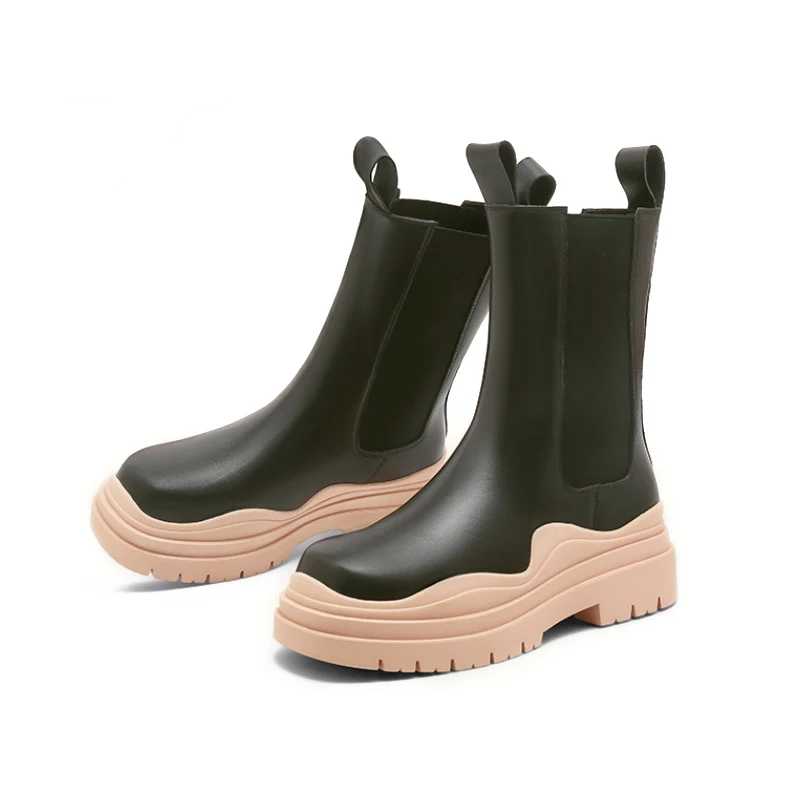 Женские ботинки челси на толстой подошве Camel, ботильоны без шнуровки в британском стиле, средней длины, на платформе, 2021