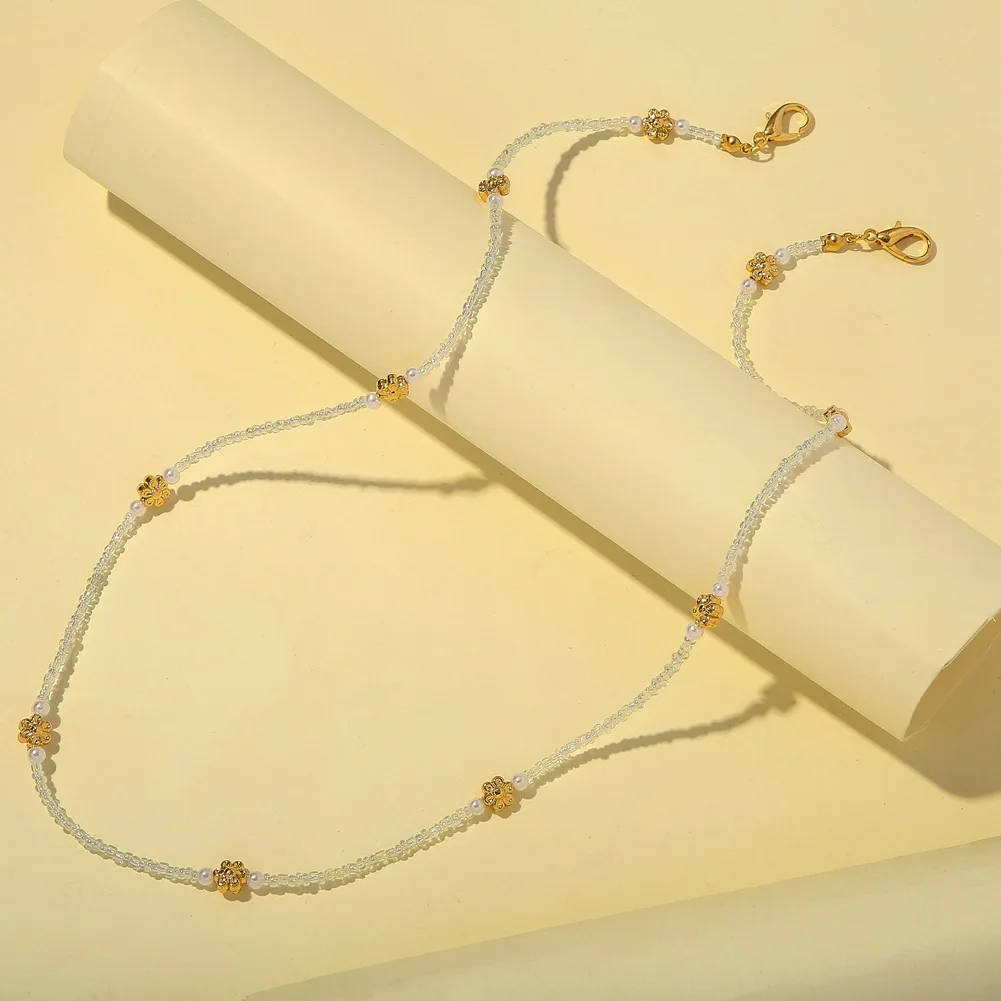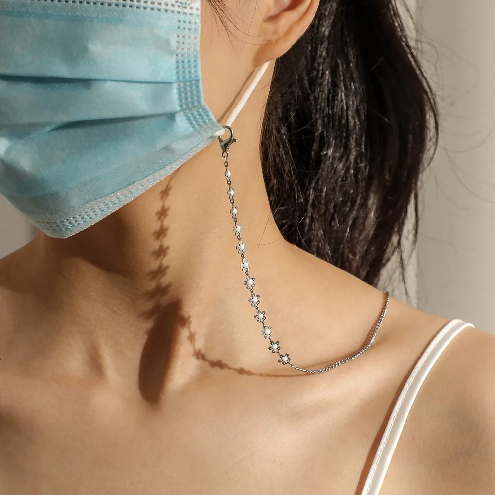 Цепочка-держатель для очков женская, шнурок золотистого цвета из нержавеющей стали с маленьким цветком для солнцезащитных очков, шнур на шею