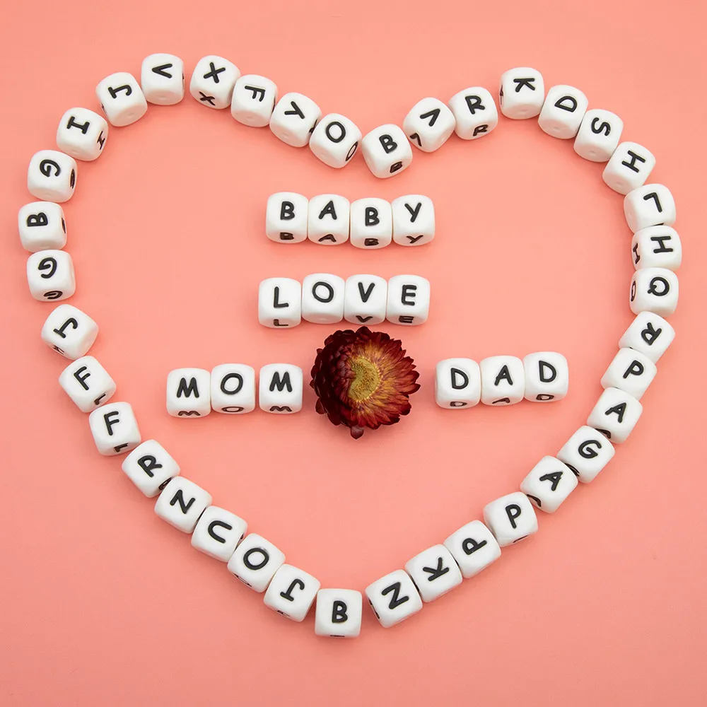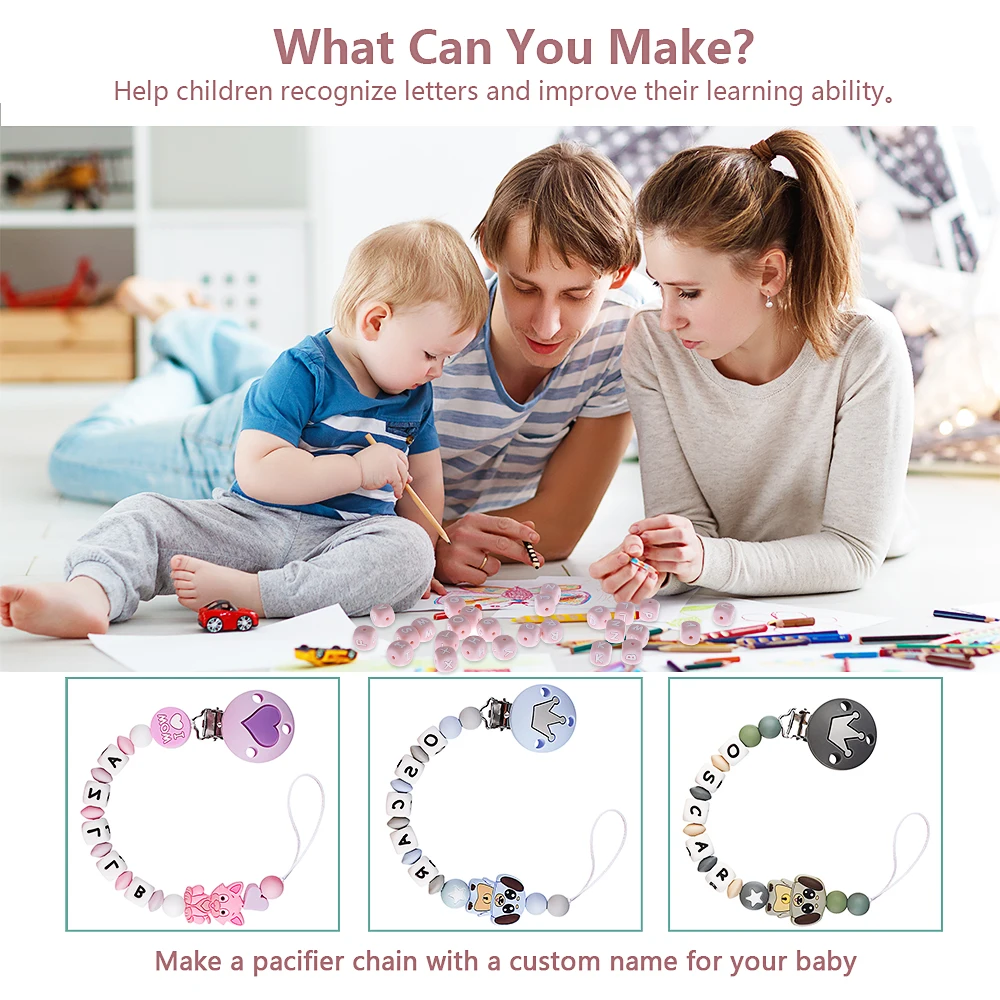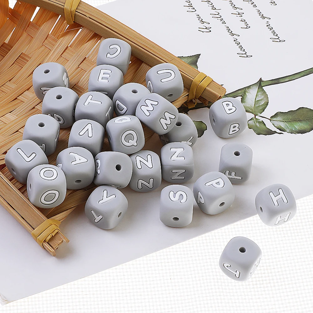 TYRY.HU, 50100500 шт., силиконовые буквы, бусины, цветной Английский алфавит, силиконовые жевательные бусины, сделай сам, детские игрушки для прорезывания зубов, подвеска 12 мм
