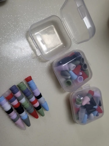 всё круто, заказываю второй раз. в упаковке 51 наконечник и некоторые из них (больше всего белые и черные, но есть и зелёные) немного толще что-ли чем остальные, таких хватит надолго, есть более мягкие но они тоже норм, со своей функцией справляются. короче берите, норм