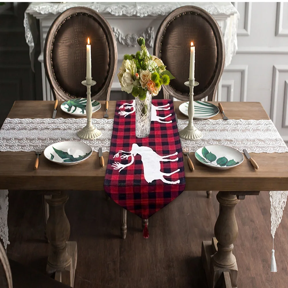 Рождественские льняные скатерти с кисточкой, домашние вечерние Нескользящие скатерти, противообрастающие скатерти, рождественские вечерние украшения для дома