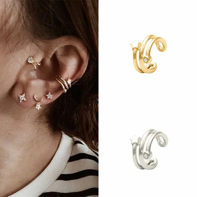 CRMYA, золотистые и Серебристые серьги для женщин, 1 шт., очаровательные серьги, серьги без пирсинга, ювелирные изделия