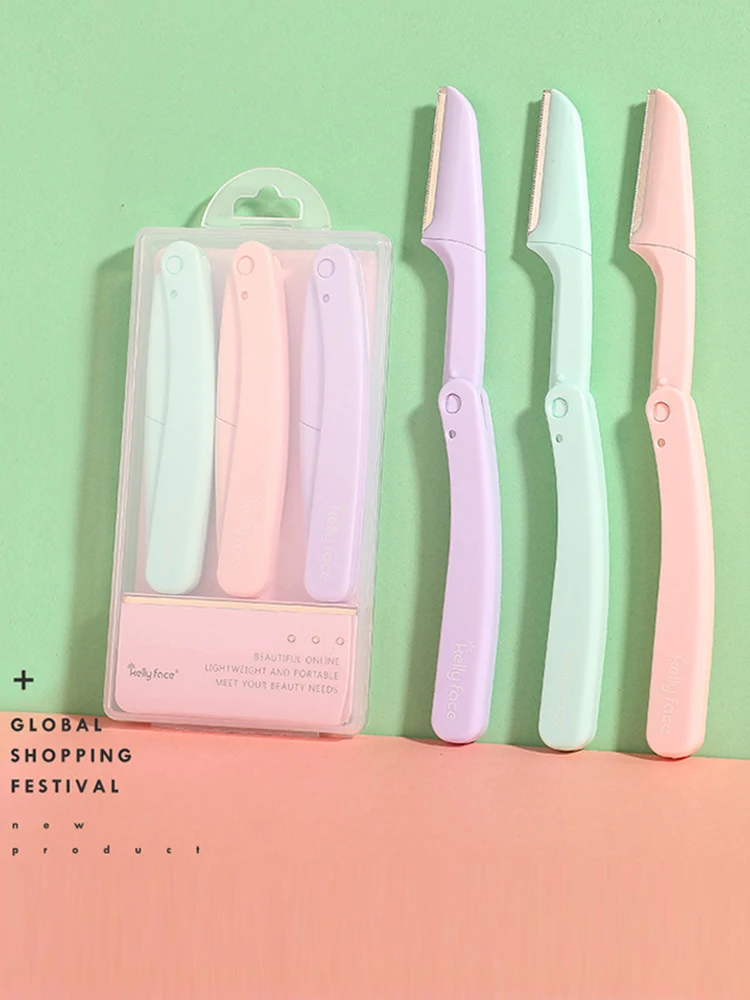 Триммер для бровей, 3 шт.компл., безопасное удаление волос на лице, острые лезвия, портативный складной триммер для бровей, женские косметические инструменты
