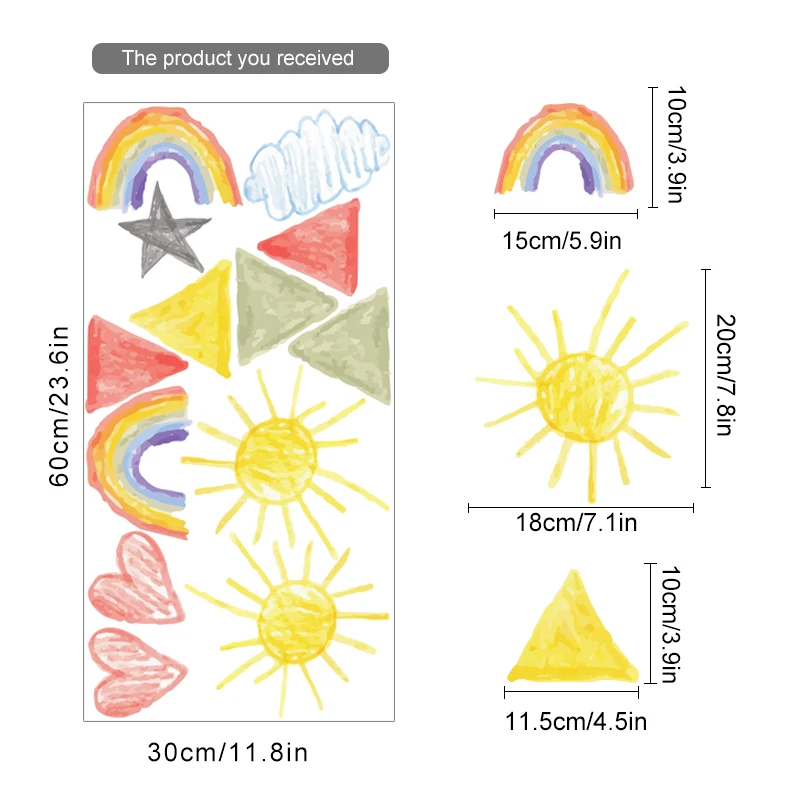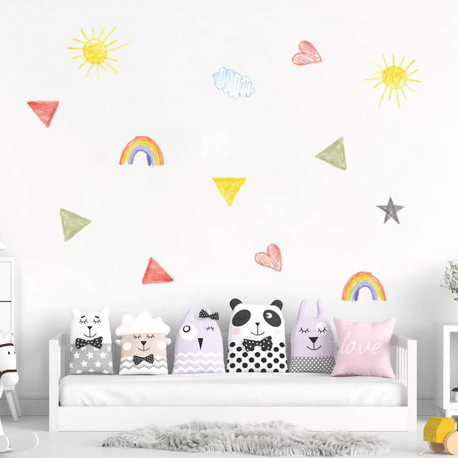 Мультяшные красочные радужные наклейки на стену для детской, винило...