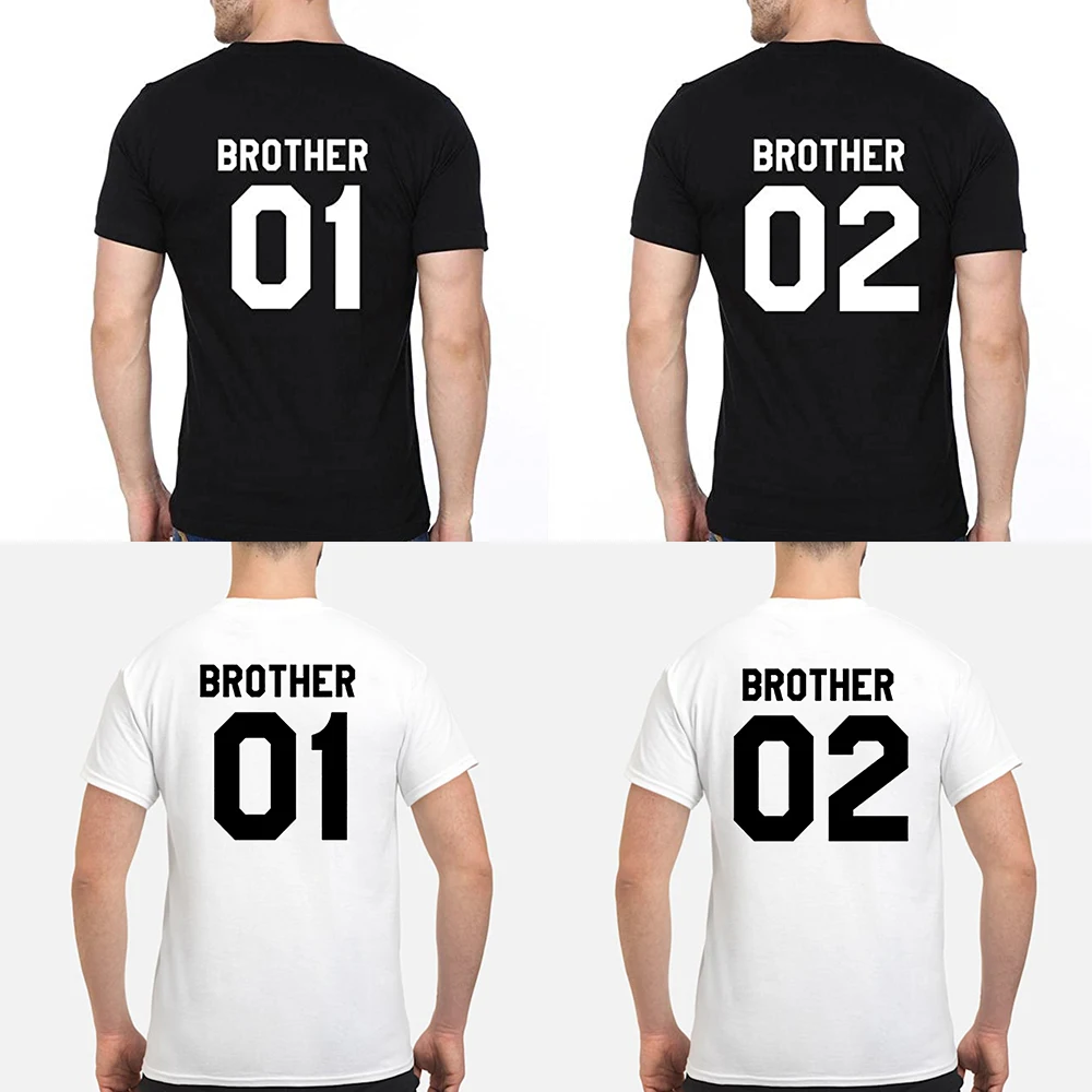 Футболка Brother 01 02 Мужская с коротким рукавом, модная уличная одежда в стиле Харадзюку, футболка с графическим принтом для лучших друзей, близнецов, летняя