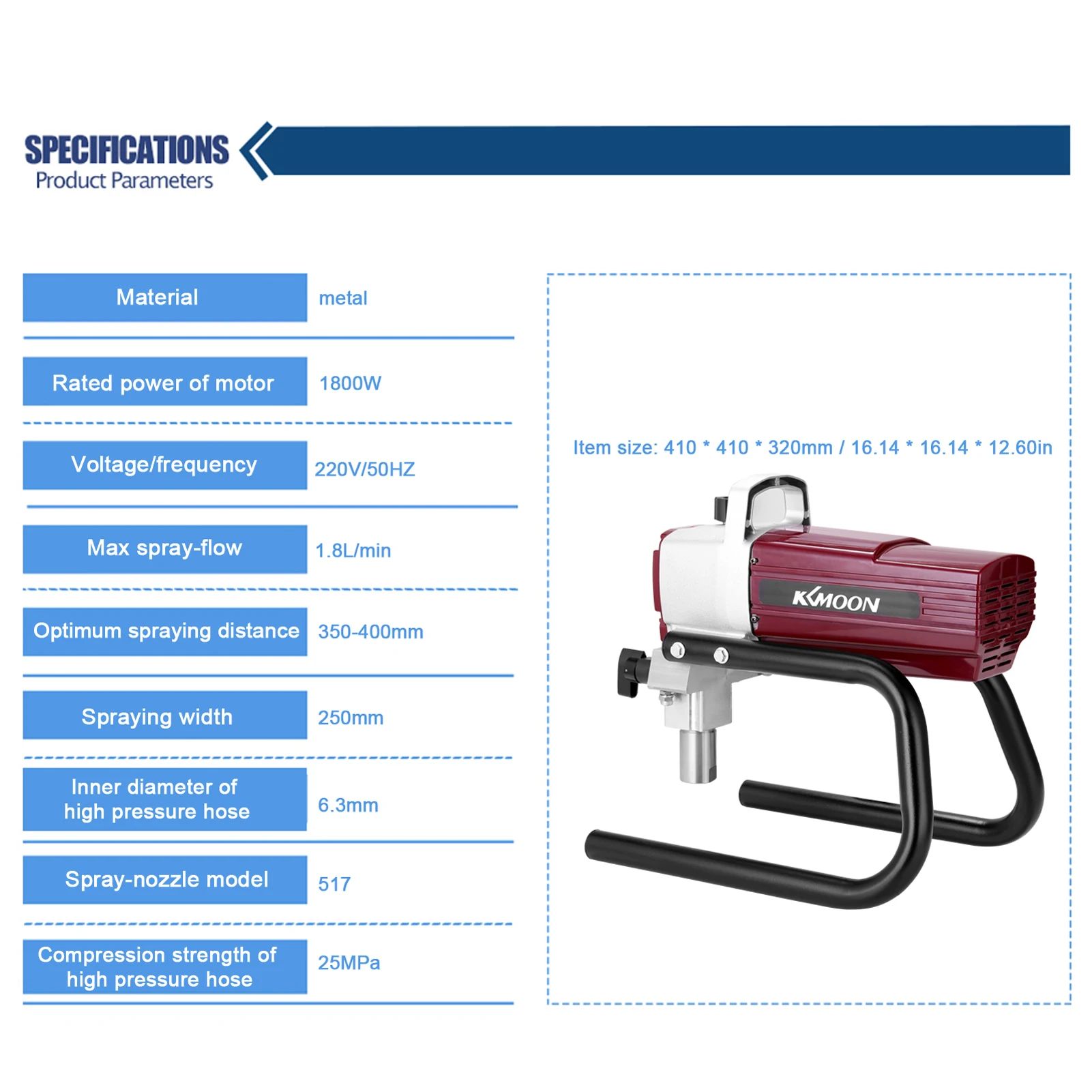 KKmoon 1800 Вт Профессиональный безвоздушный распылитель краски, Электрический распылитель краски высокого давления, инструмент для нанесения краски внутри, лмин, ЕС
