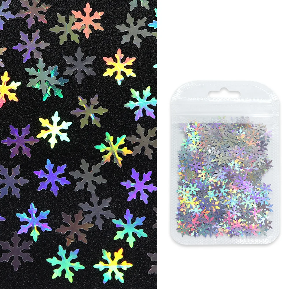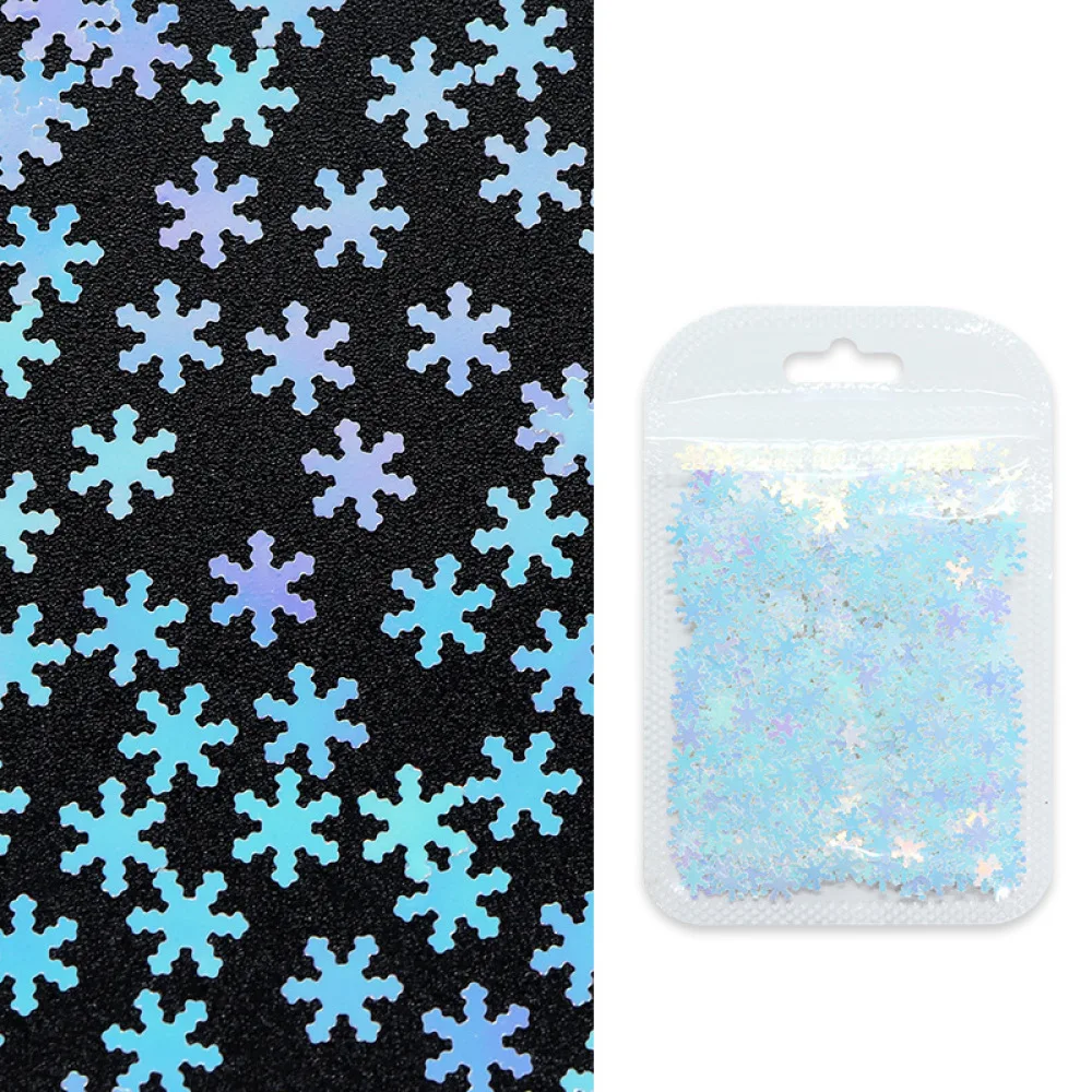 Рождественские снежинки, лазерные блестки для ногтевого дизайна, хл...