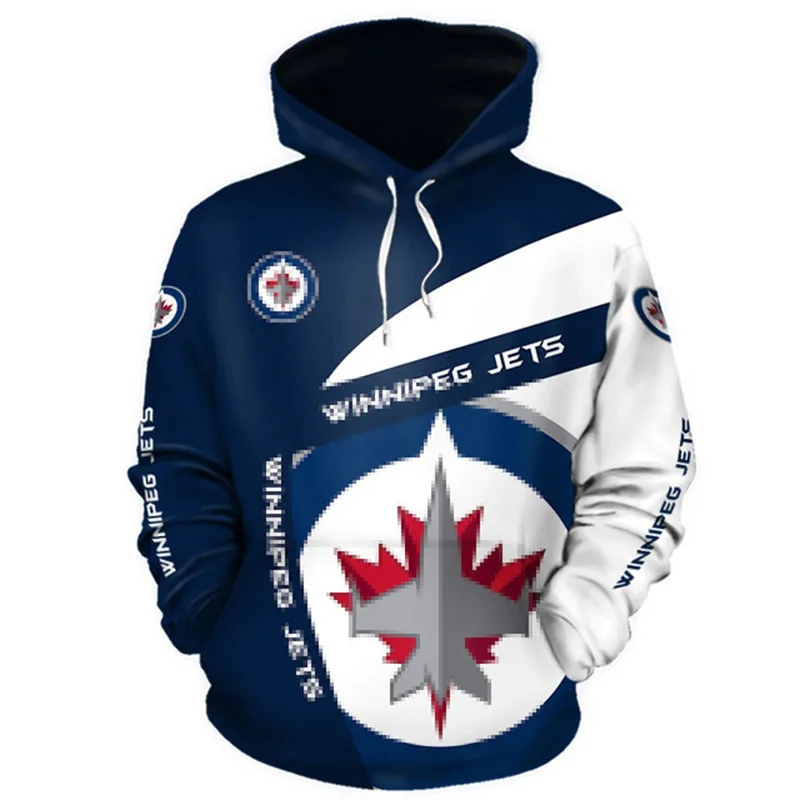 Виннипег мужская мода 3D толстовка синяя белая строчка мультфильм И...