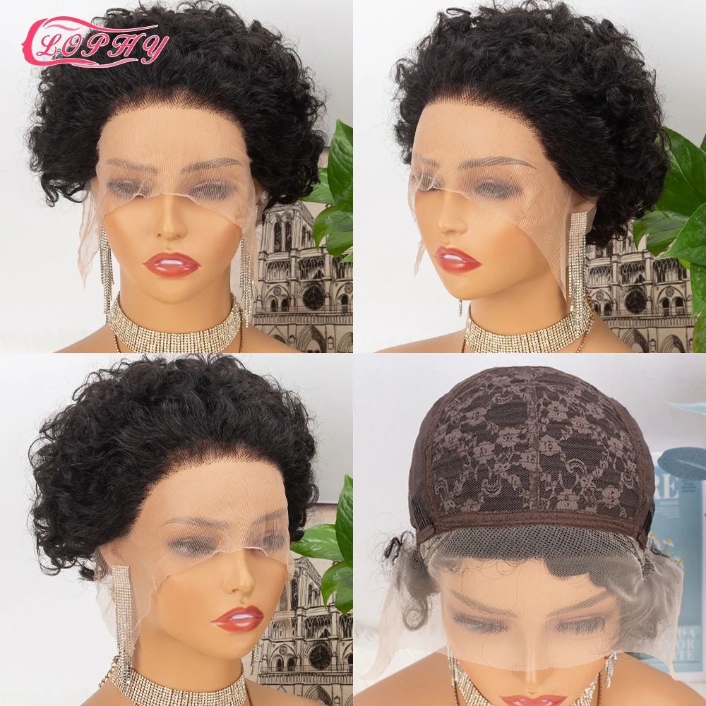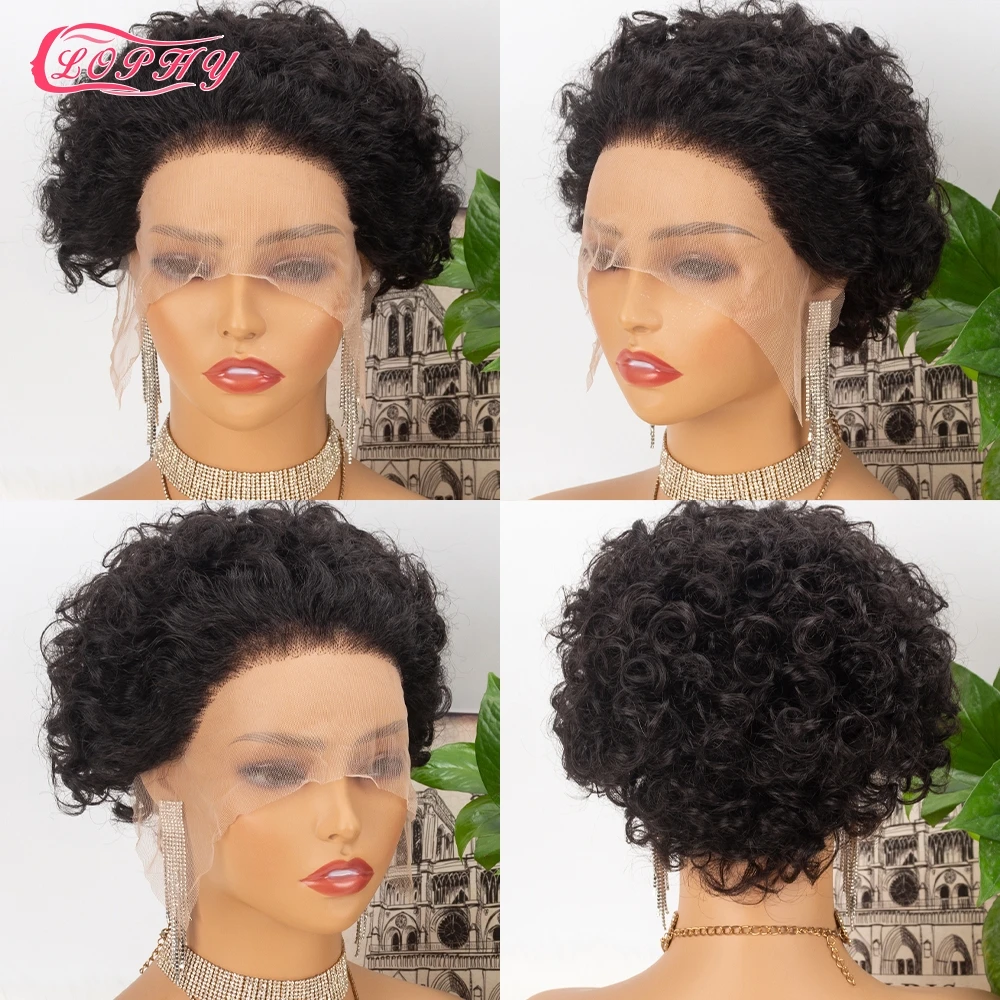 Короткие вьющиеся парики из человеческих волос, парики с вырезами фея, парики на шнуровке спереди для женщин, парик с неповрежденными волосами для женщин, предварительно выщипанные Детские волосы