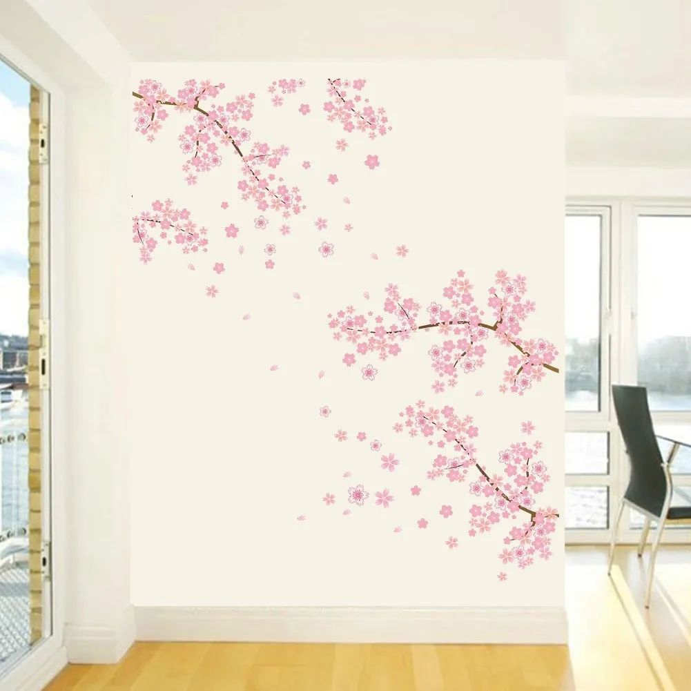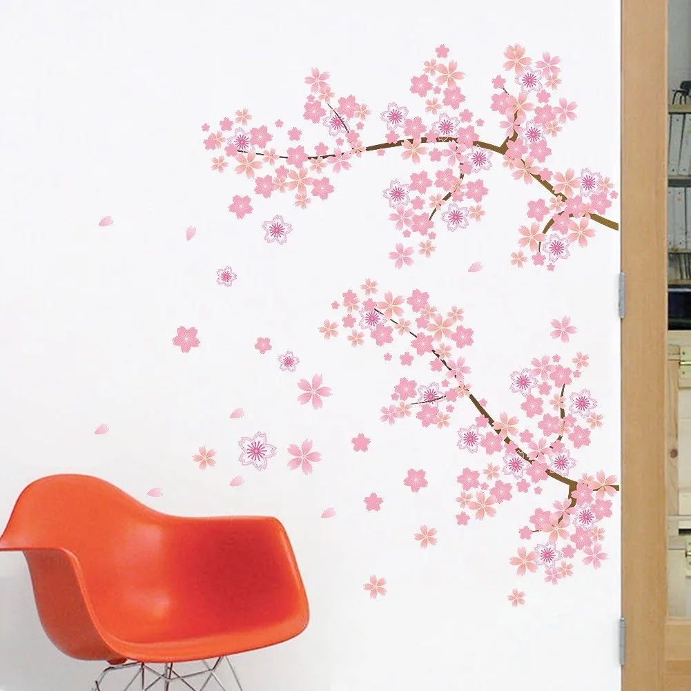 Настенные наклейки с розовыми цветами вишни, красивые цветы, ветка дерева, художественные переводки, роспись, Съемный Фон сделай сам для дивана, декор комнаты