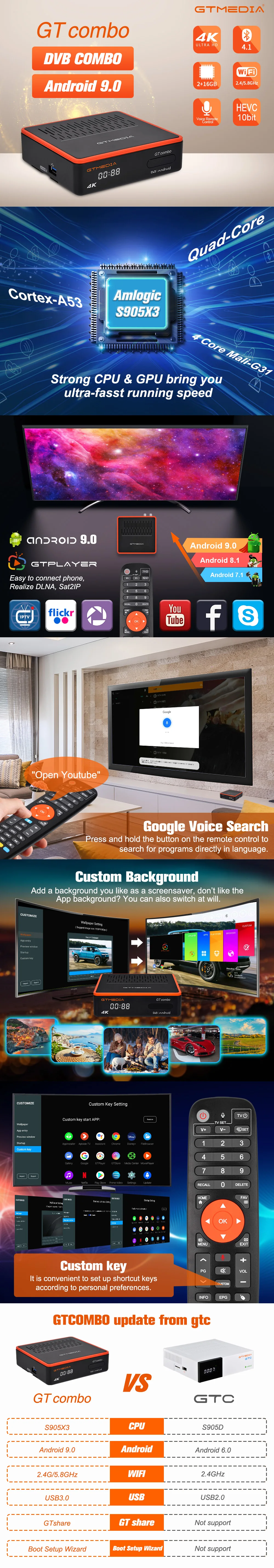 GTMEDIA GT Combo 4K 8K HD TV BOX 4:2:2 Android 9,0 + DVB-S2XT2C 2 + 16 спутниковый ТВ приемник декодерGoogle Smart Set Top Box