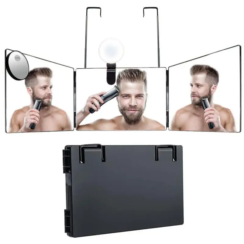 1 шт. трехстороннее зеркало с углом обзора 360 градусов, практическое зеркало со светильник кой для самостоятельной стрижки волос и укладки, инструмент для самостоятельной стрижки