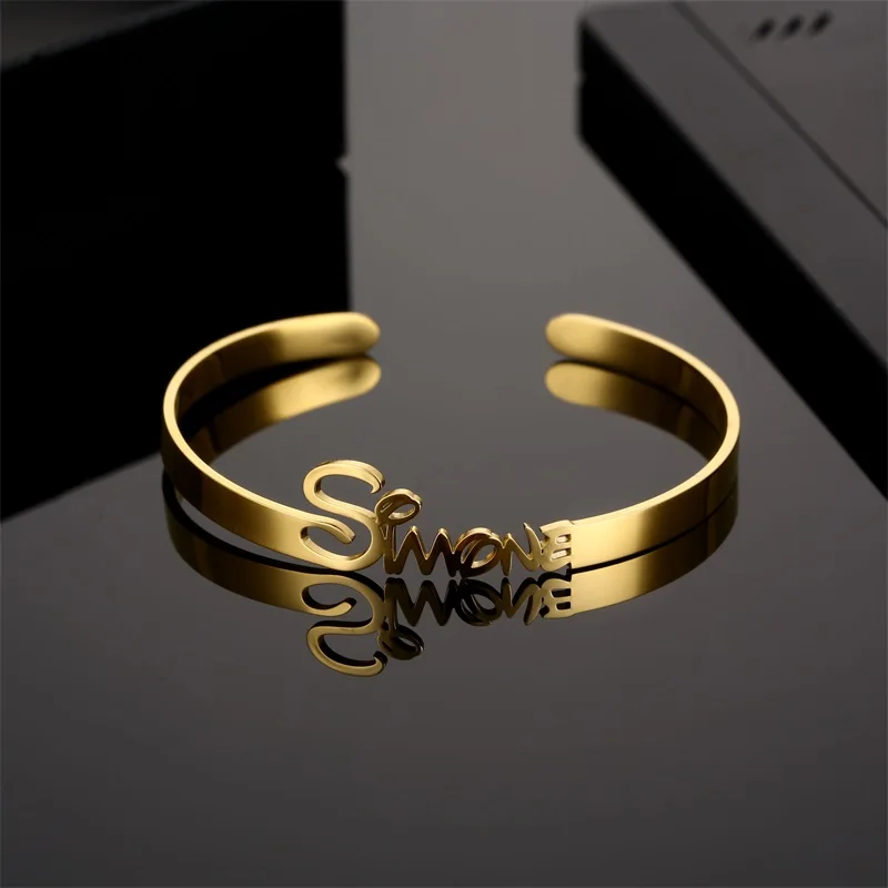 Браслет с именем на заказ, золотистый браслет из нержавеющей стали ...