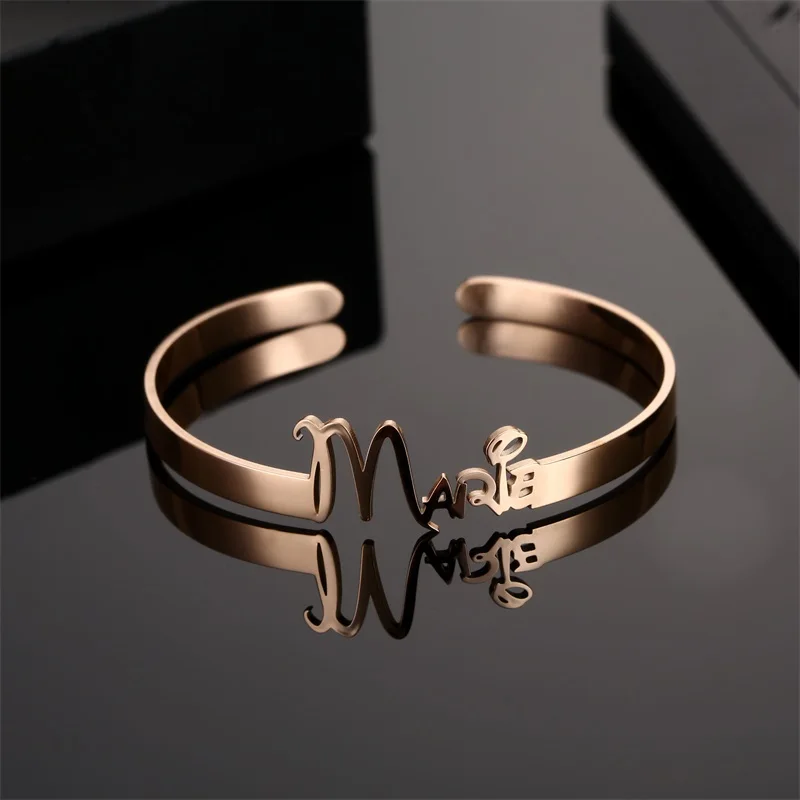 Индивидуальная именная табличка с названием браслет персонализированные пользовательские браслеты манжетного типа для Для женщин мужчин розовое золото Нержавеющаясталь Jewely