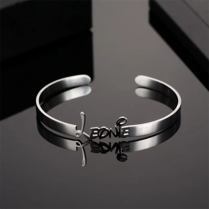 Браслет с надписью и именем для мужчин и женщин, браслет из нержаве...