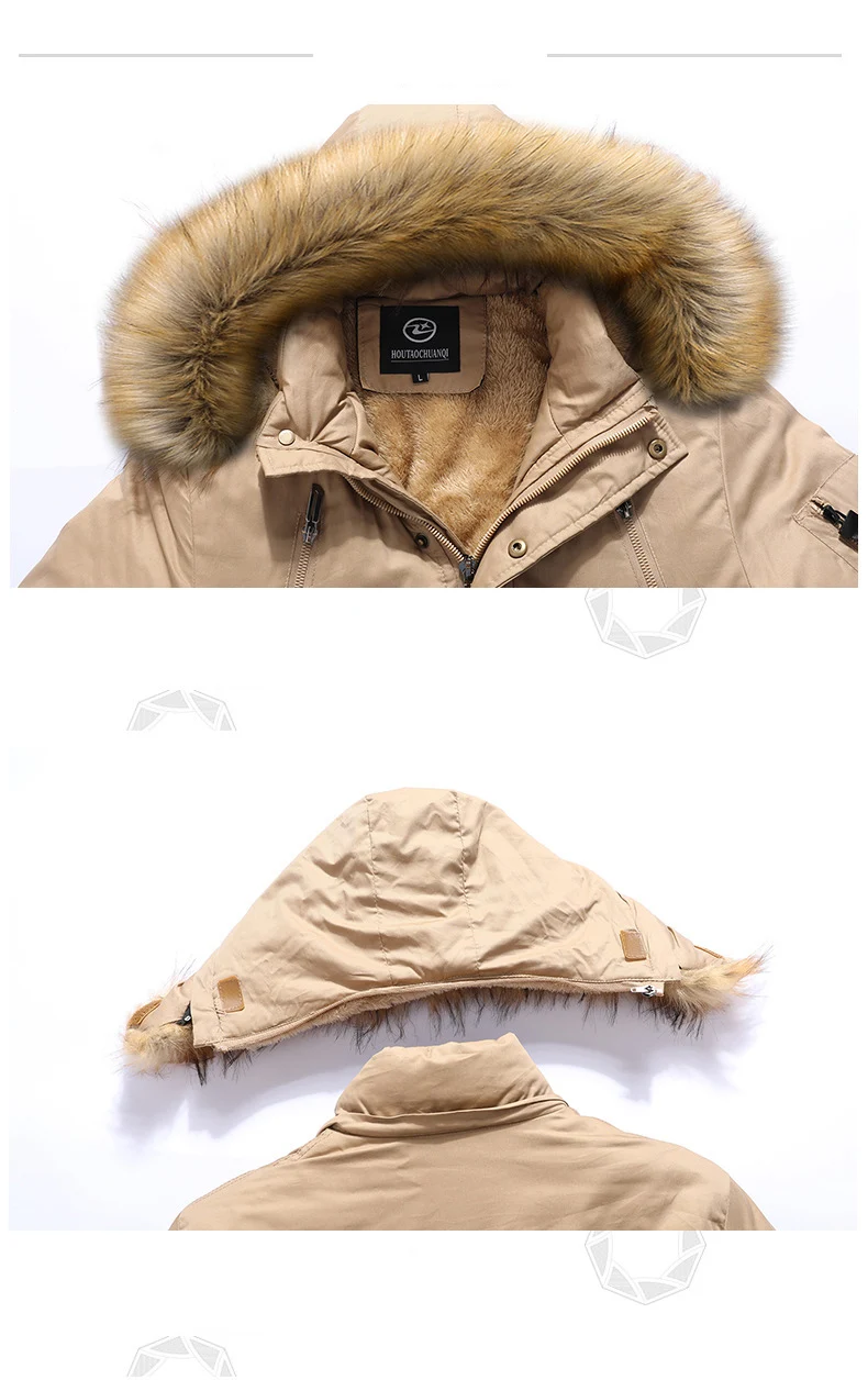 Новая мужская хлопковая зимняя куртка с подкладкой теплая верхняя одежда средней длины меховой воротник пальто ветровка со съемной шапкой брендовая куртка Мужская парка