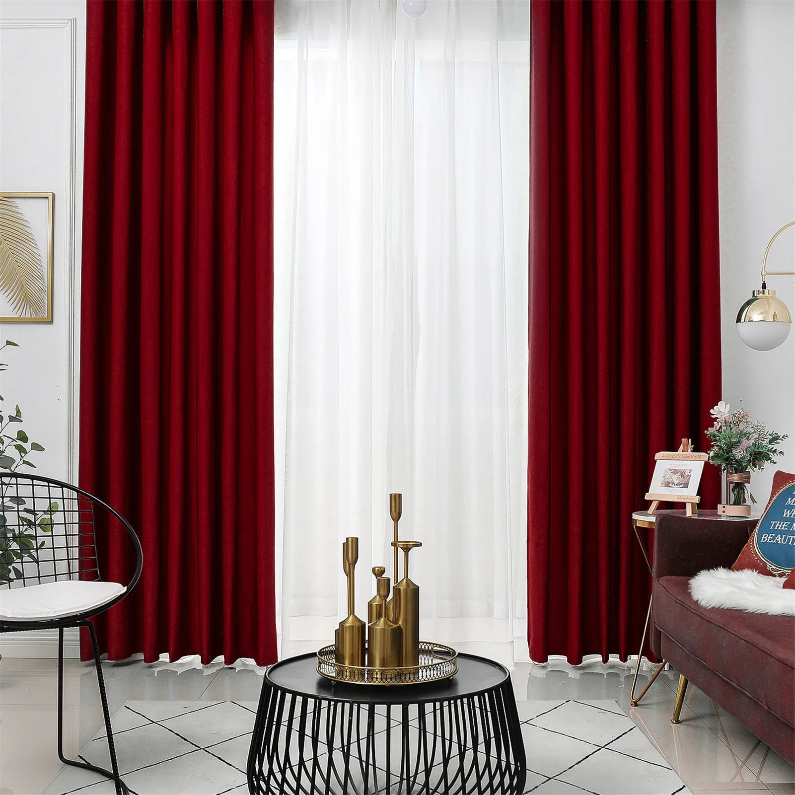 Бархатные затемняющие шторы для спальни, роскошные черные тканевые занавески на окна, двери, затенение, красная ткань для гостиной, Рождество