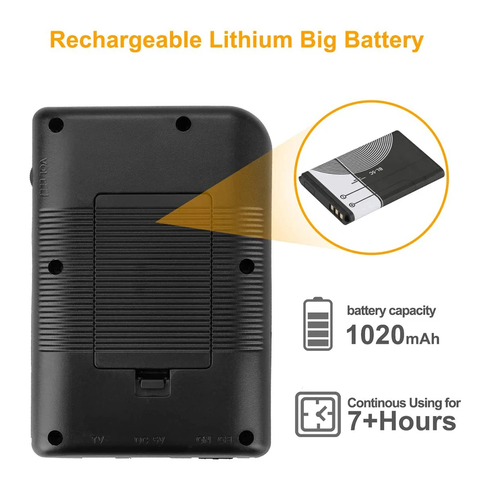 Эта портативная консоль поставляется с перезаряжаемой литиевой батареей 1020 мАч, более 7 часов работы от батареи. Когда вы находитесь в деловой поездке, путешествии, кемпинге, вам не придется беспокоиться о том, что у вас нет энергии.