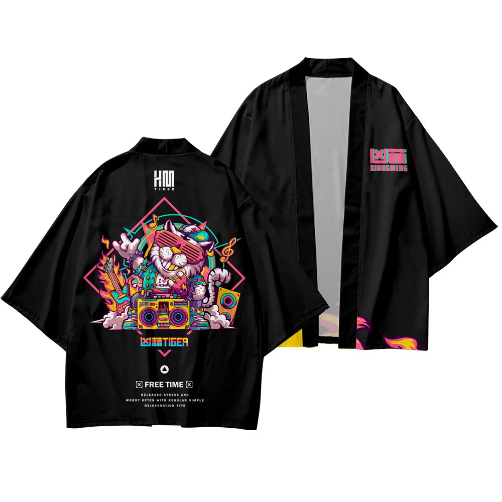 Кимоно для мужчин и женщин традиционное японское, кардиган с лисьей...