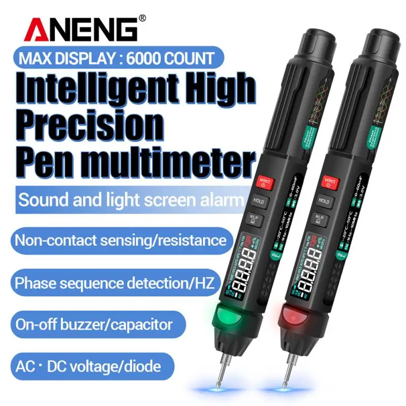 Мультиметр ANENG A3008 Pen, тестер на 6000 отсчетов, Бесконтактный индикатор напряжения, сопротивления, емкости, диодов, проверка целостности цепи