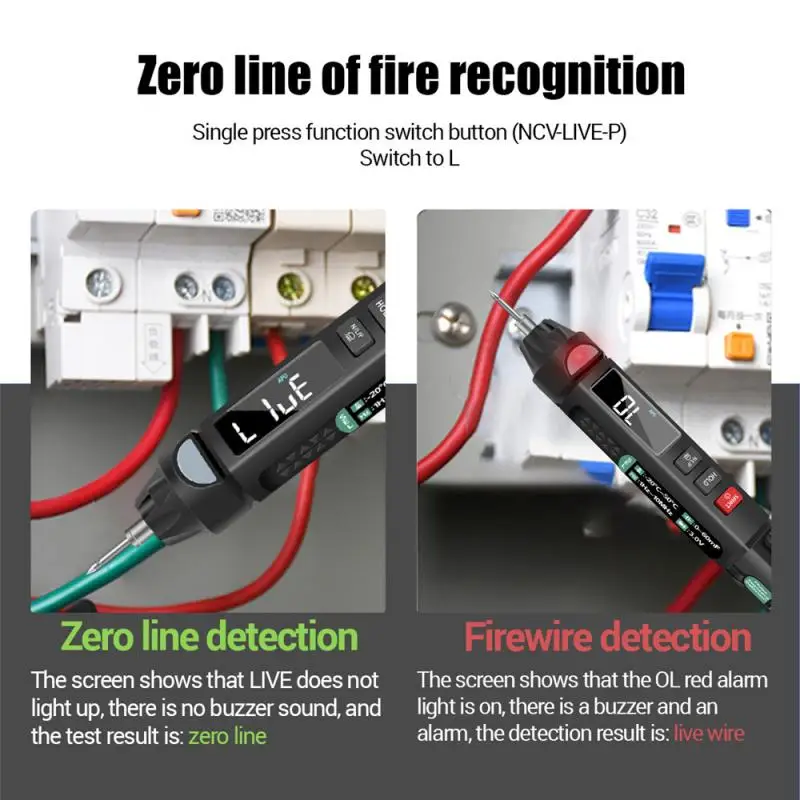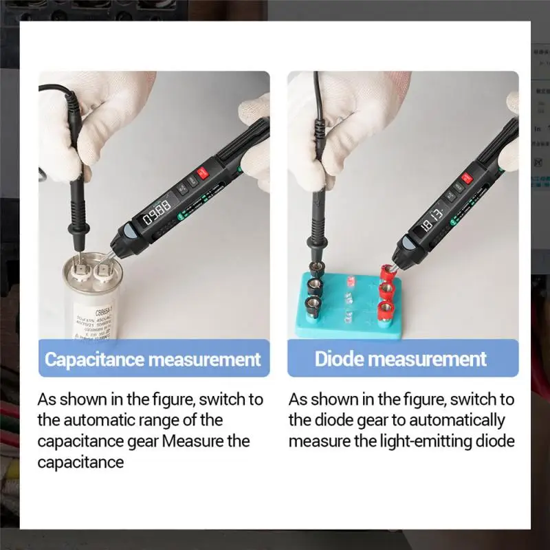 Универсальный мультиметр-ручка: Этот мультиметр отличается испытанием напряжения/сопротивления/емкости/диода/частоты/температуры, непрерывности, нулевой линии и бесконтактной фазы обнаружения последовательности и т. д.