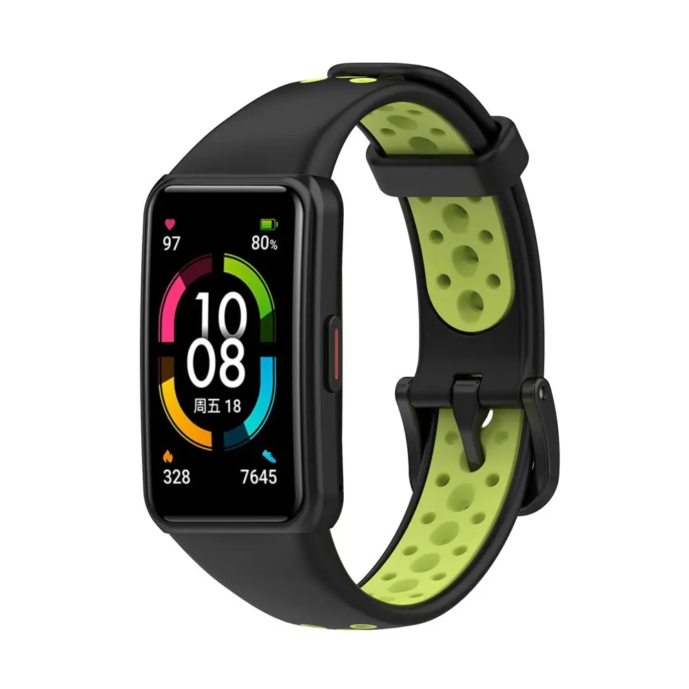 Новый дышащий Двухцветный силиконовый сменный ремешок с пряжкой для браслета Huawei Band 6 Honor Band 6