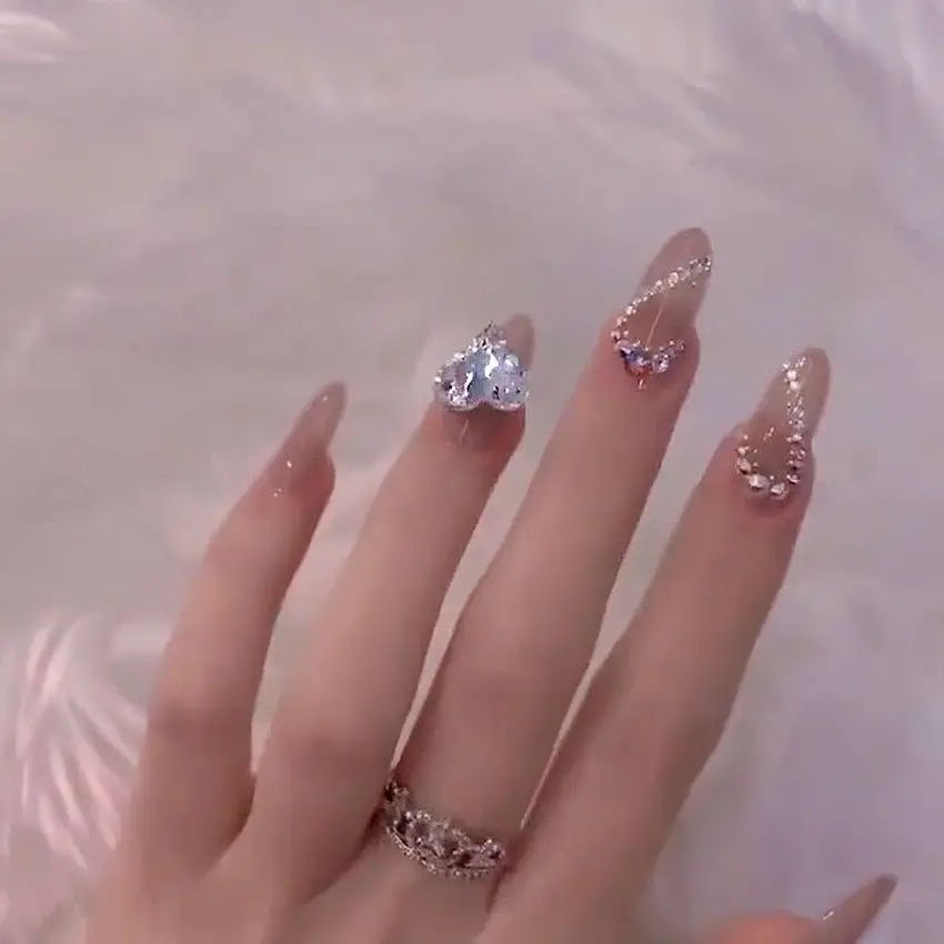 24 шт. роскошные свадебные накладные ногти в форме сердца стразы розовый очень длинный дизайн 2021 балета полный искусственный дизайн ногтей Прямая поставка
