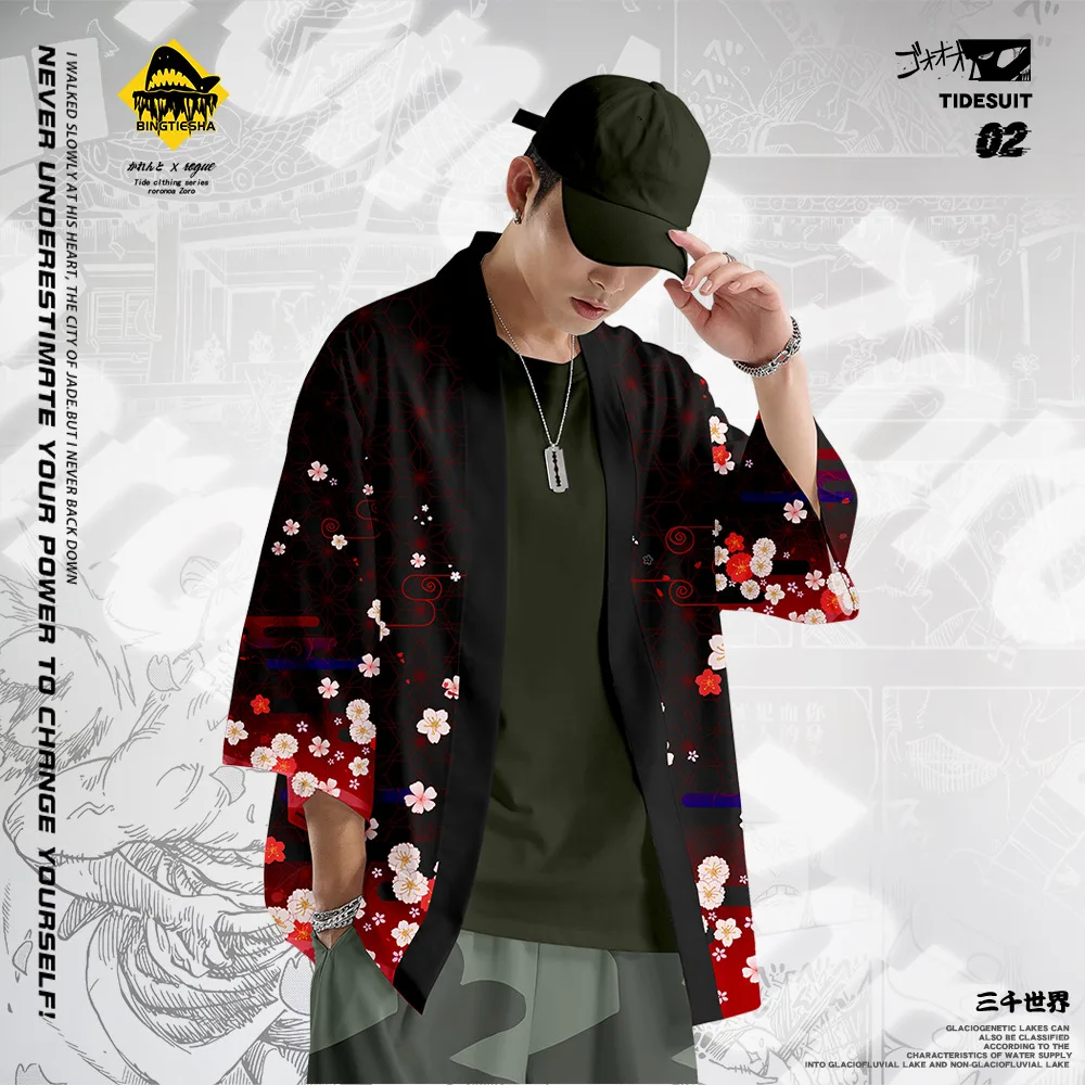 Модное кимоно для мужчин и женщин, кардиган, Сакура, хаори, Оби, аз...