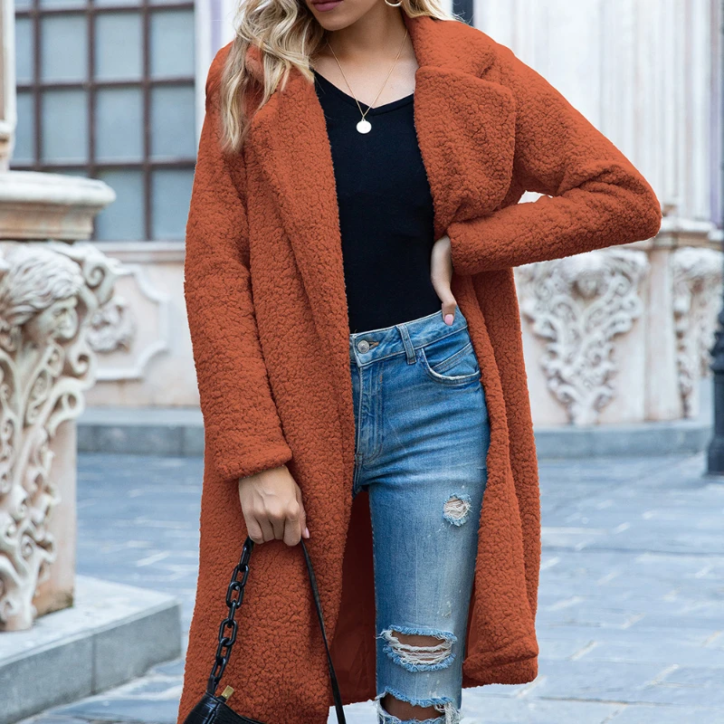 Осень-зима 2021, теплое длинное пальто, женское плюшевое пальто из ...