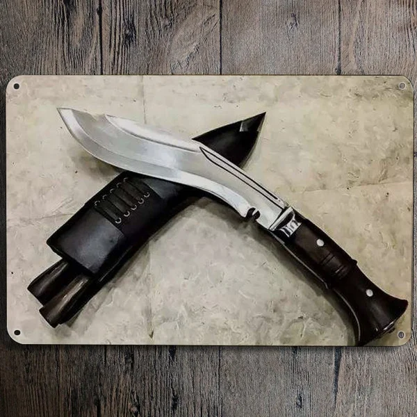 Острый непальский армейский нож ручной работы с жестяным знаком 2021 (Размер: 20x30 см) (это жестяной знак, не инструмент, не инструмент) 8*12 дюймов