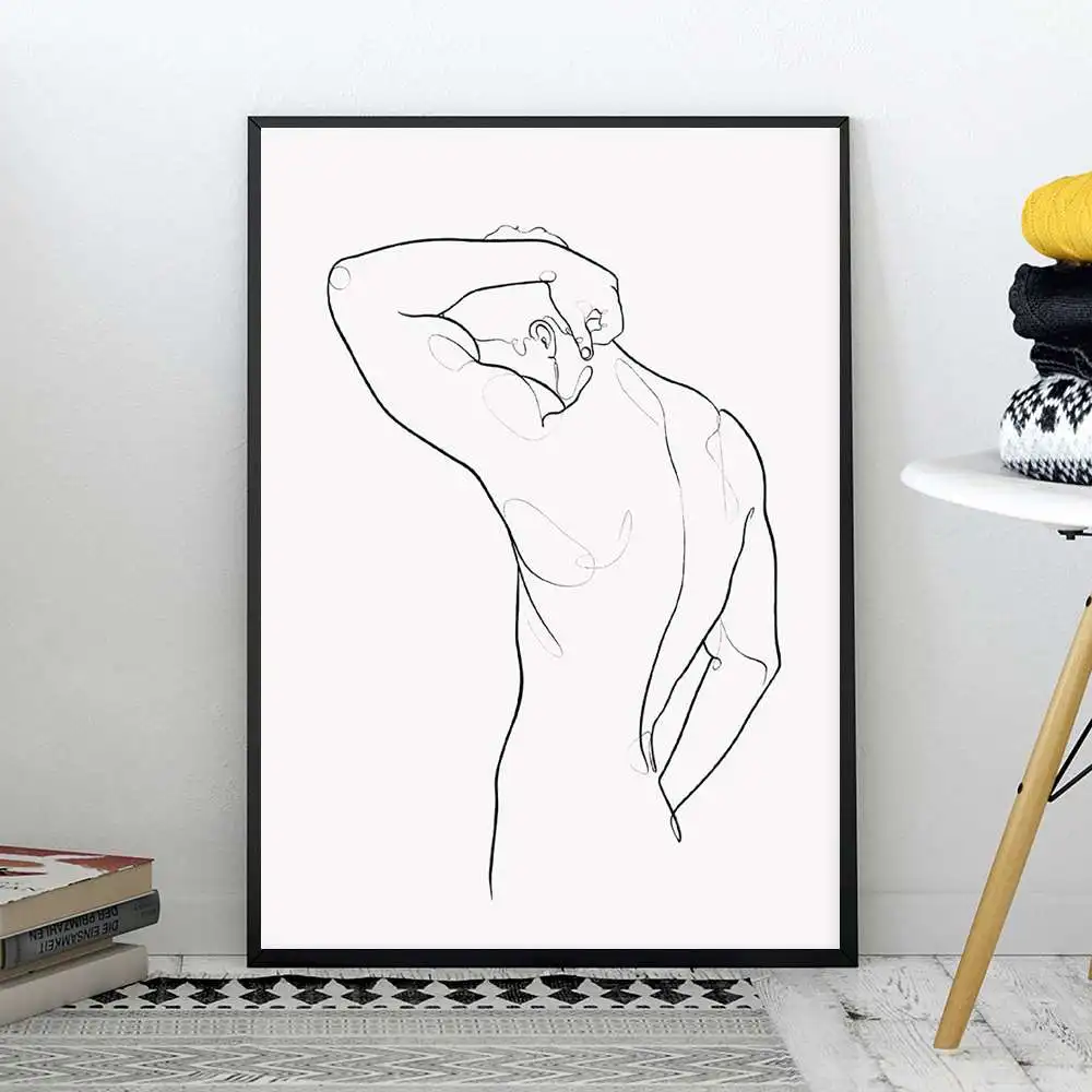 Абстрактный мужской принт тела Мужская обнаженная линия Художественная печать одна линия для спальни домашний декор