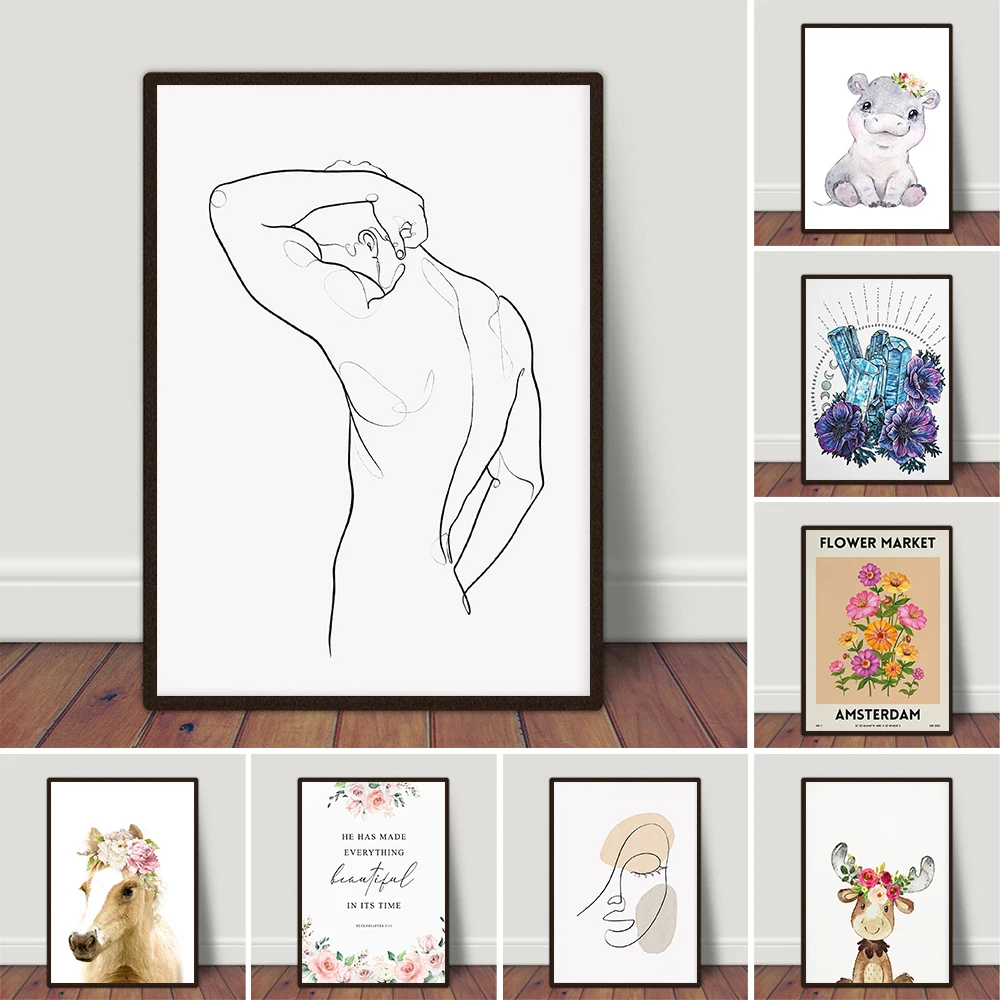 Однолинейный плакат без одежды, женское тело, холст, принты, картин...