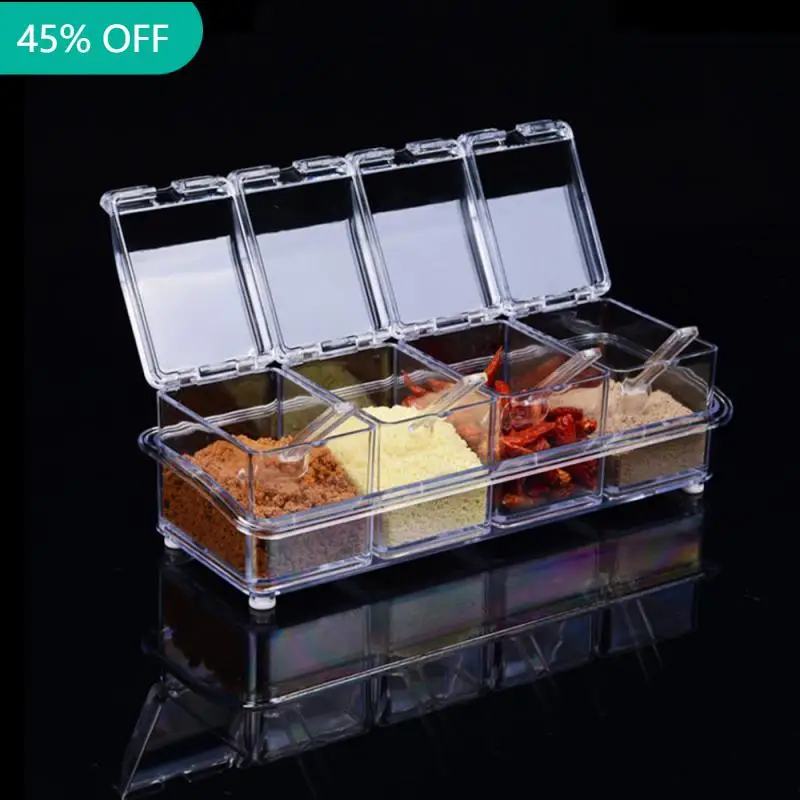 Кухонные принадлежности прозрачная приправа коробка четыре сетки приправа коробка четыре в одном с ложкой приправа банка набор, лучшие в коробке приправы, простой прозрачный цвет, минималистский стиль до крайности.Прозрачный материал простой и простой.Уплотнение хорошее, и нет беспокойства о безопасности приправ.Четыре комбинации, больше вариантов, для ваших потребностей в приготовлении пищи.Каждая маленькая коробка поставляется с маленькой ложкой, которая облегчает измерение в любое время.