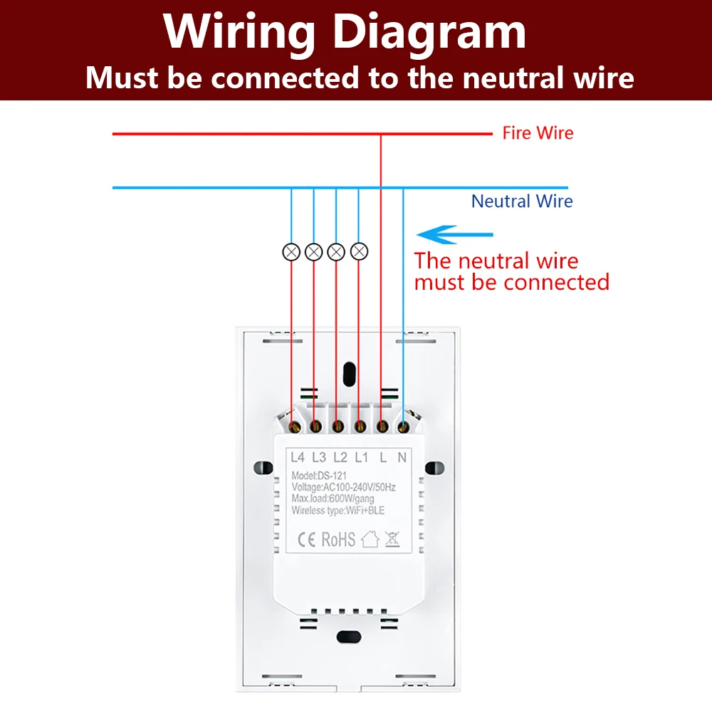 Характеристики1/2/3/4 Gang WiFi Touch Switch