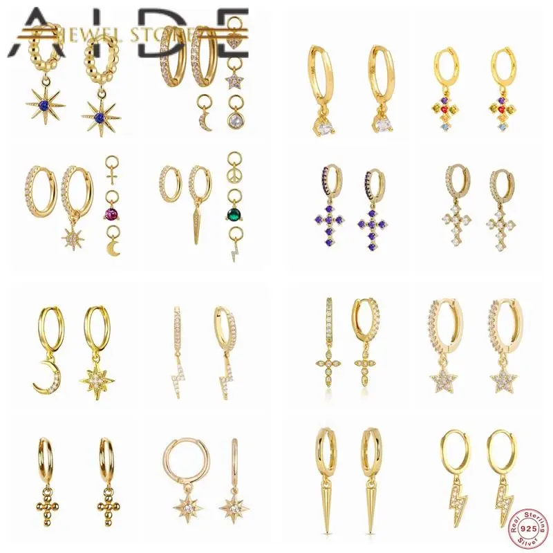 Aide Pendientes Plata, 925 пробы, серебряные подвески, серьги с кристаллами циркония, с заклепками, серьги-кольца с молниями, подарок на день рождения