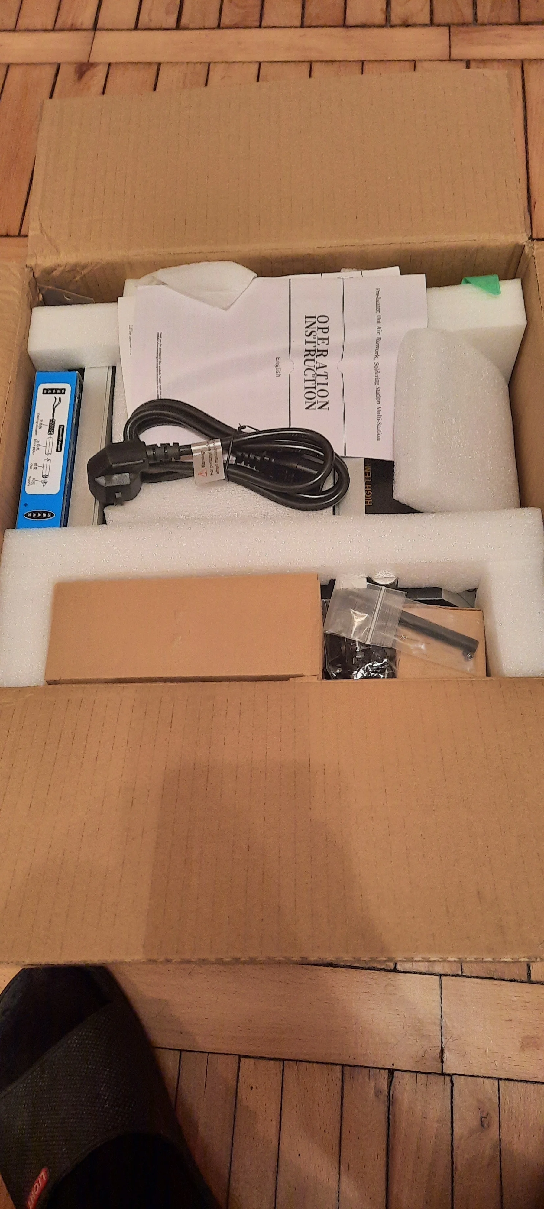 Есть некоторые повреждения на корпусе, но не критично. Все работает, не понятно почему температуру паяльника показывает установленную, а не текущую. Еще как пожелание это инструкцию на русском желательно.