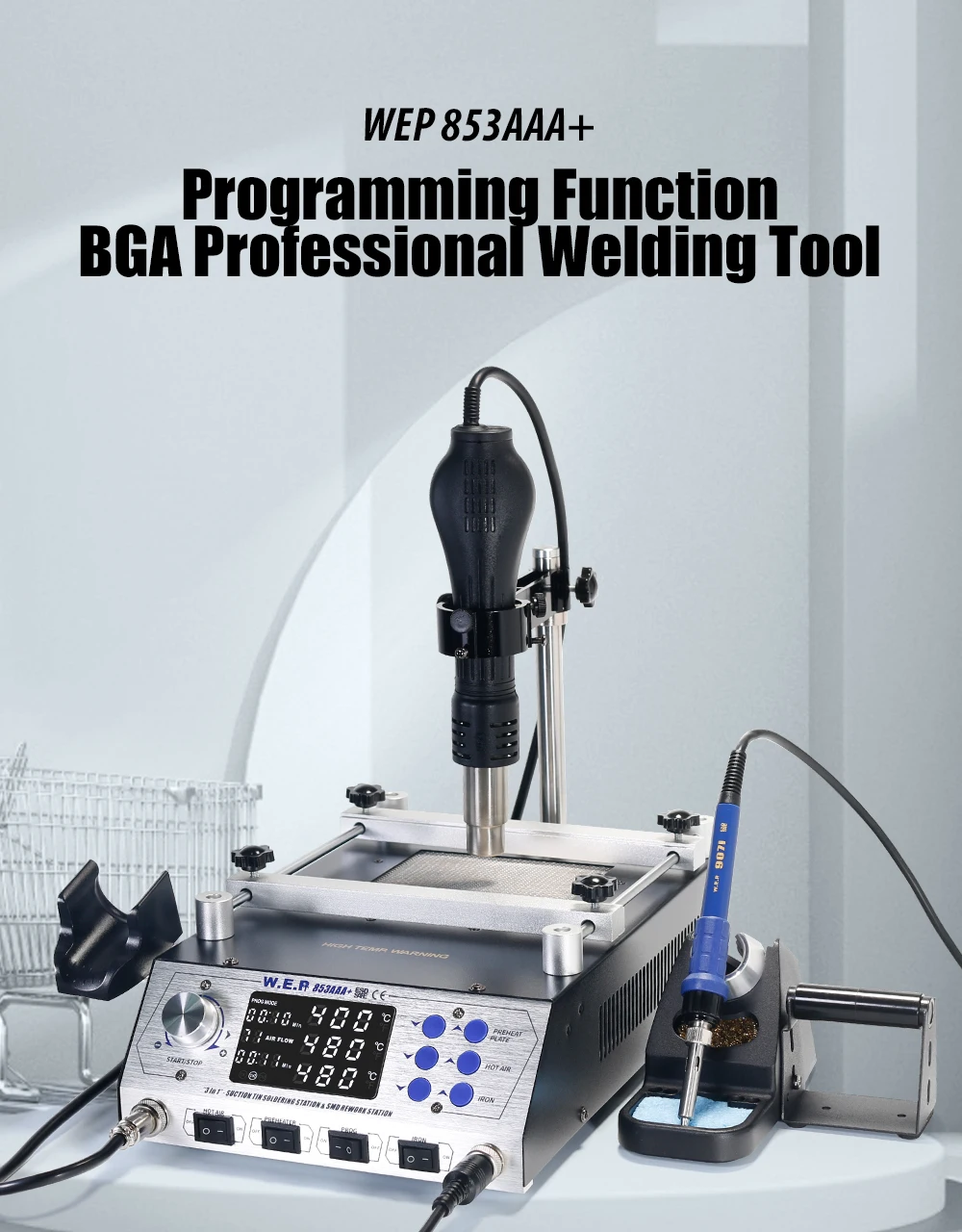WEP 853AAA + программируемая сварочная станция 1200 Вт BGA, станция предварительного нагрева, паяльник, паяльная станция 3 в 1 с горячим воздухом