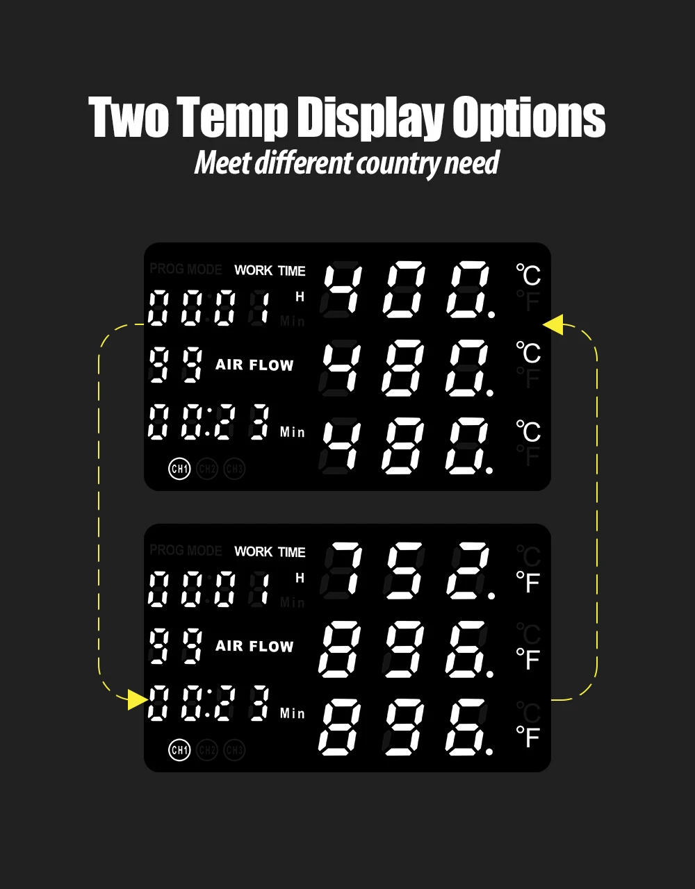 Диапазон температур: 200 °C-480 °C/392 °F-896 °F