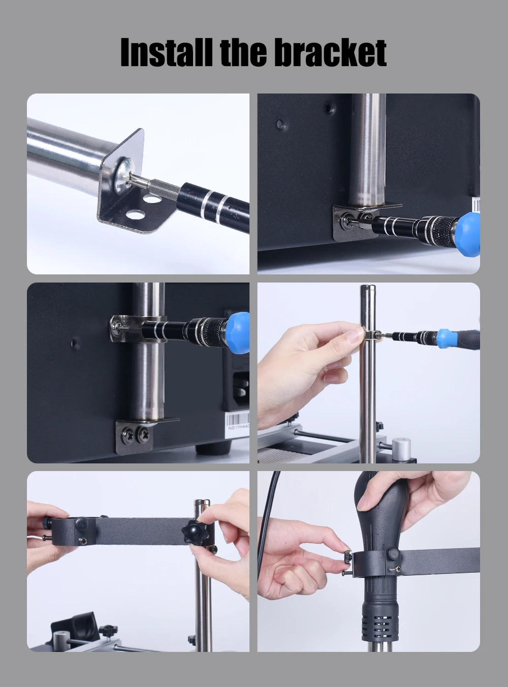 Этот блок подходит для демонтажа и уплотнения компонентов, включая BGA, SOIC, CHIP, QFP, PLCC и многое другое. Он особенно подходит для демонтажа BGA модулей, компьютерных ЦП розеток, мобильный телефон плат, всех типов SMD ICs, светодиодный свет и многое другое. Его также можно использовать для термоусадочной, сушки, зачистки краски, удаления клея, размораживания, предварительного нагрева, пайки клея и т. д.