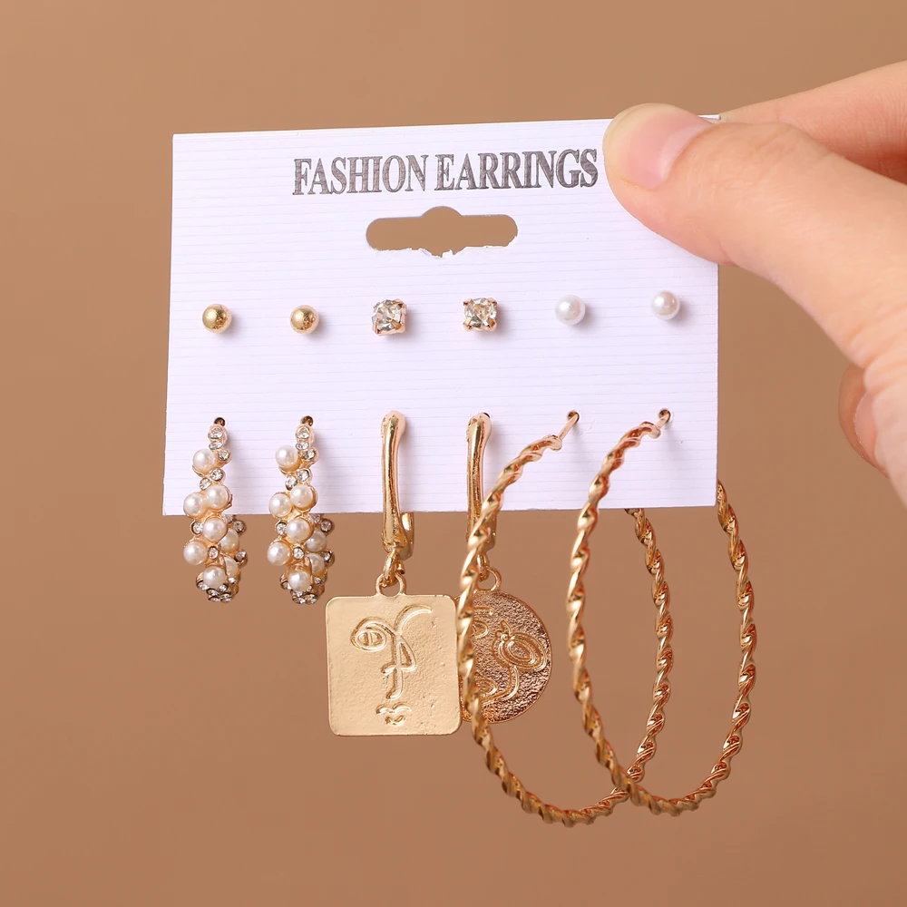 VKME большой золотой жемчуг серьги-кольца набор для женщин лицо вис...