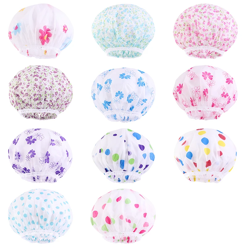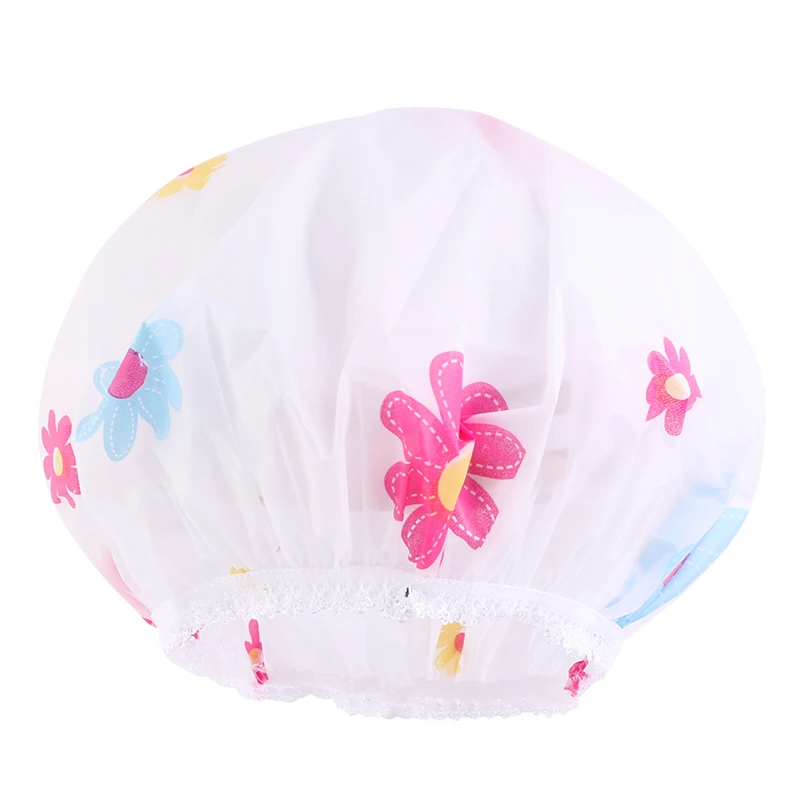 Новая Водонепроницаемая шапка для душа с принтом в горошек и кружевом, шапка для ванны для женщин, многоразовое покрытие для волос, товары для салона, спа, ванной комнаты