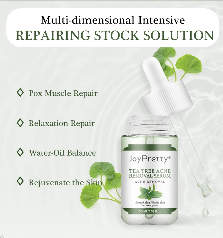 Сыворотка для удаления акне чайного дерева содержит натуральную эссенцию чайного дерева с высокой чистотой, которая отлично подходит для удаления акне. Эссенция чайного дерева содержит натуральные противовоспалительные питательные вещества и обладает превосходной увлажняющей способностью. Сыворотка для удаления угрей чайного дерева может использоваться на всем лице или с точечным покрытием на акне, чтобы уменьшить воспаление и покраснение.