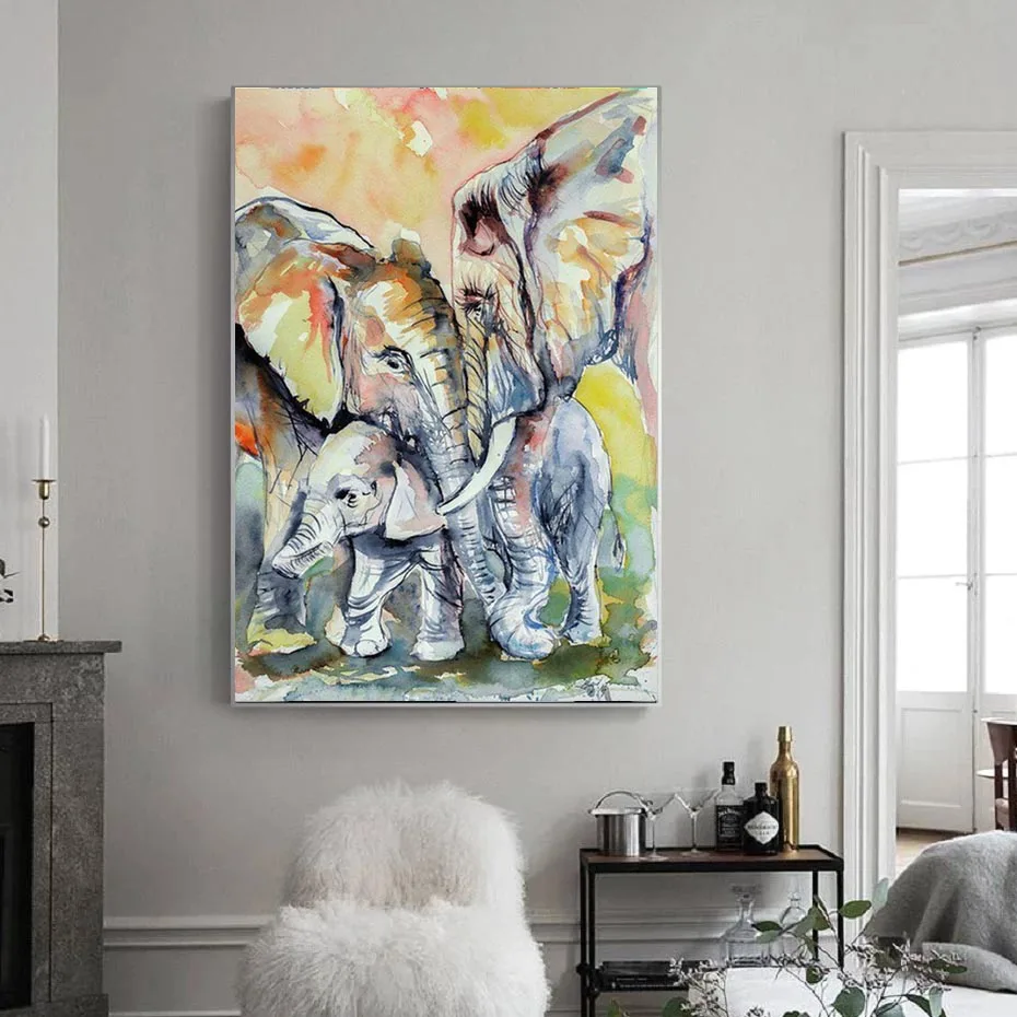 Картина на холсте с изображением слона семьи животных, современный постер для гостиной, домашнее украшение для стены, Настенная картина