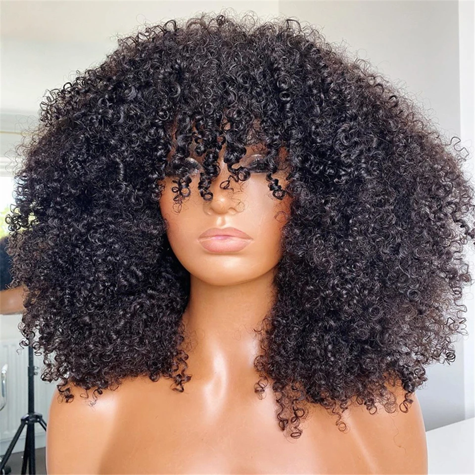 Монгольские афро кудрявые человеческие волосы парики с челкой короткие бразильские Remy человеческие волосы машина сделал парики для женщин Glueless