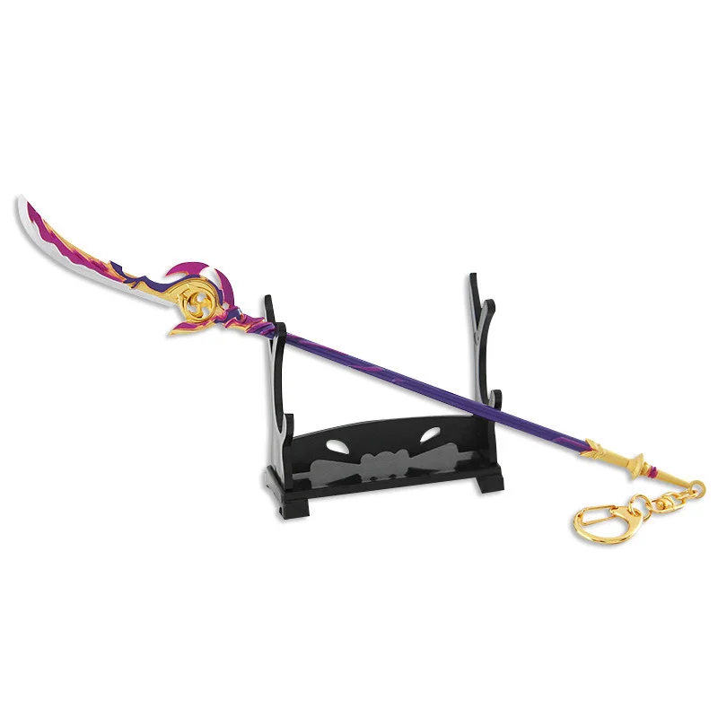 Брелок для ключей Genshin Impact Raiden Shogun, ингаляция молнией, искусственное оружие, аниме, сплав, нож, меч, модель, игрушки, металлические изделия