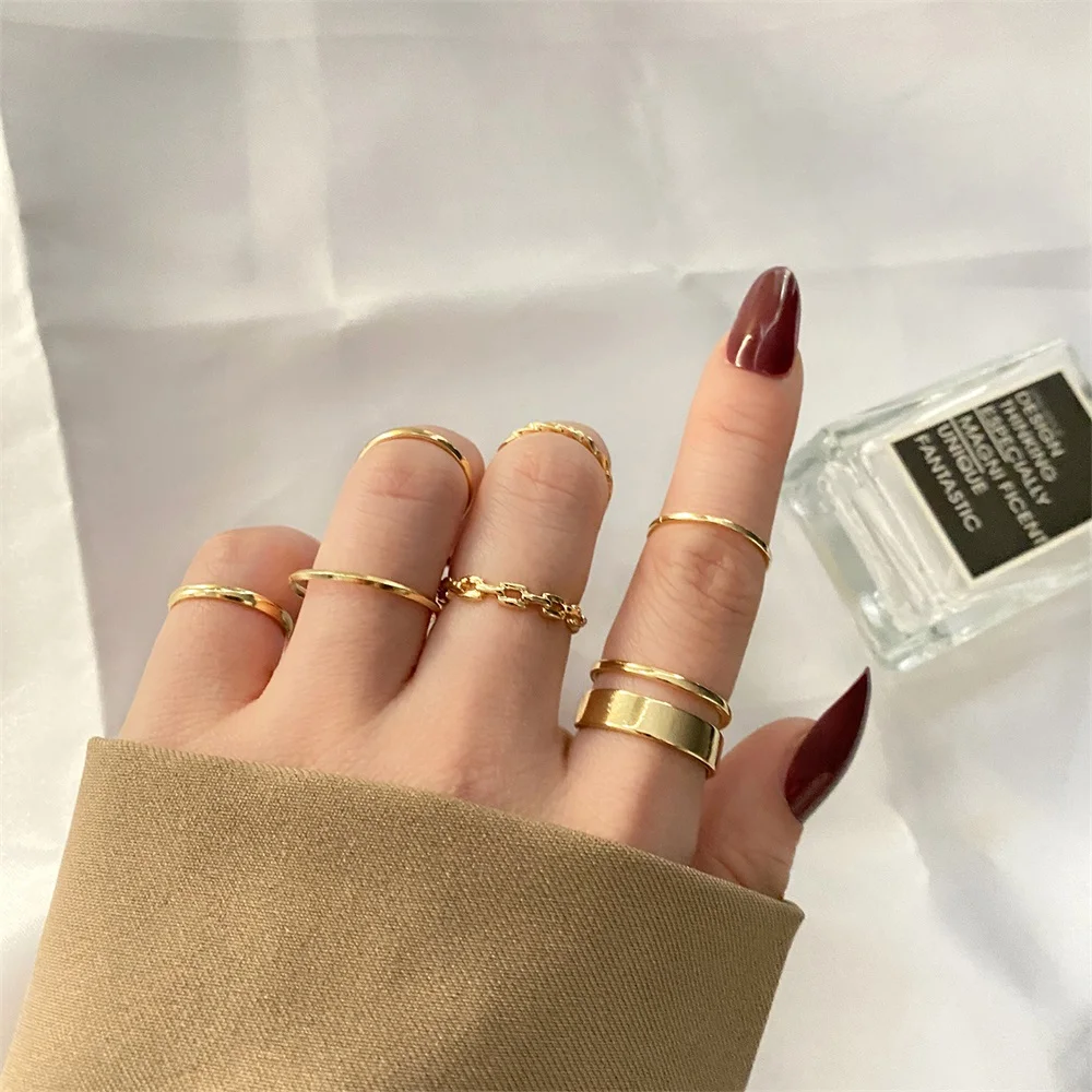 Набор женских колец FNIO, золотые, широкие, с цепочкой, нестандартн...