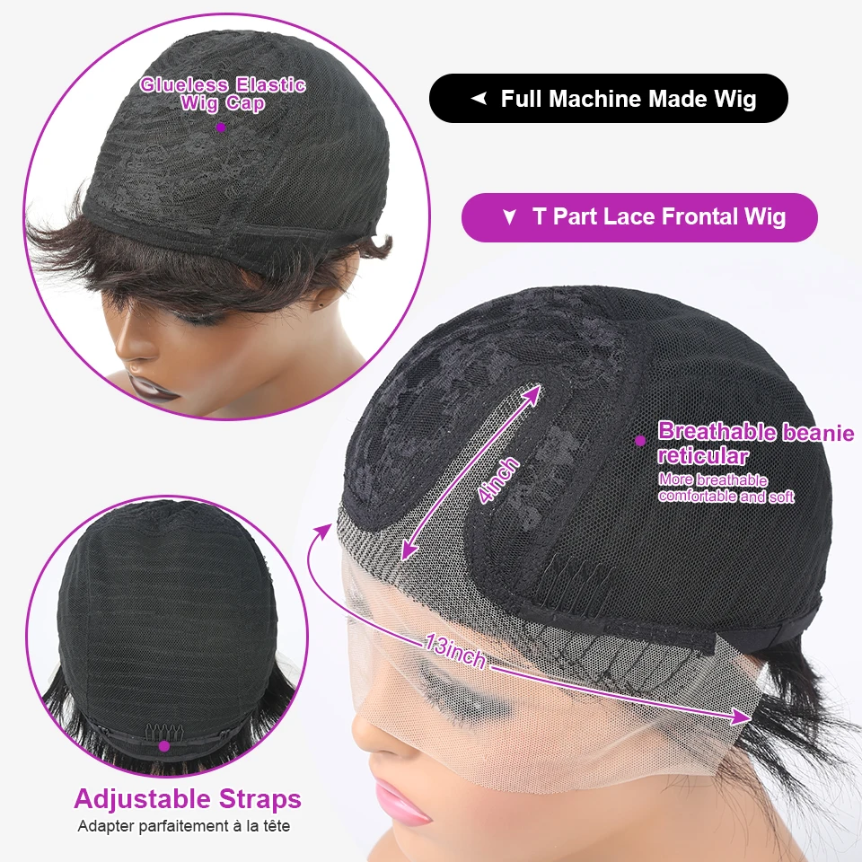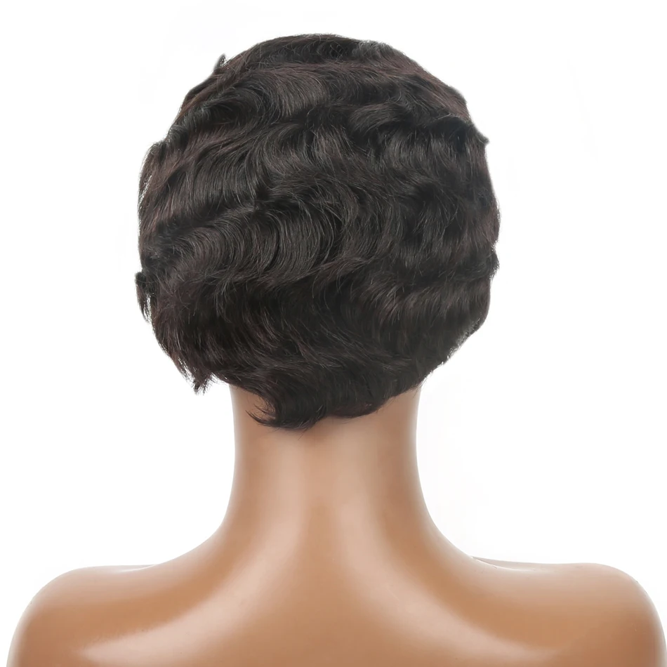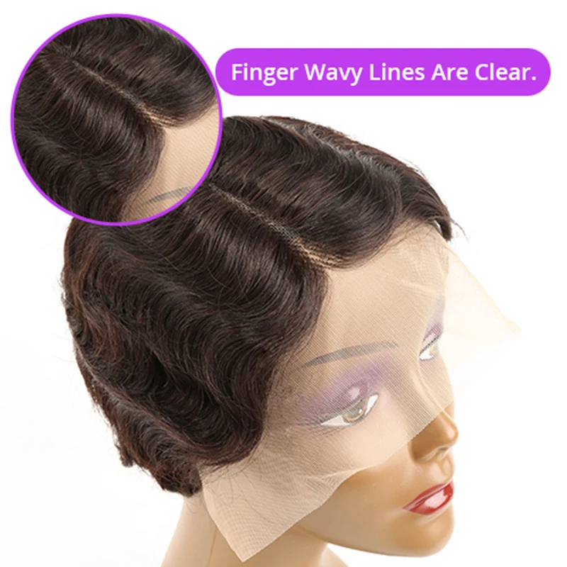 Короткие волнистые волосы с волнистыми прядями из прозрачного кружева спереди, парики из человеческих волос черного цвета для женщин, бразильские свободные волнистые человеческие волосы, парик
