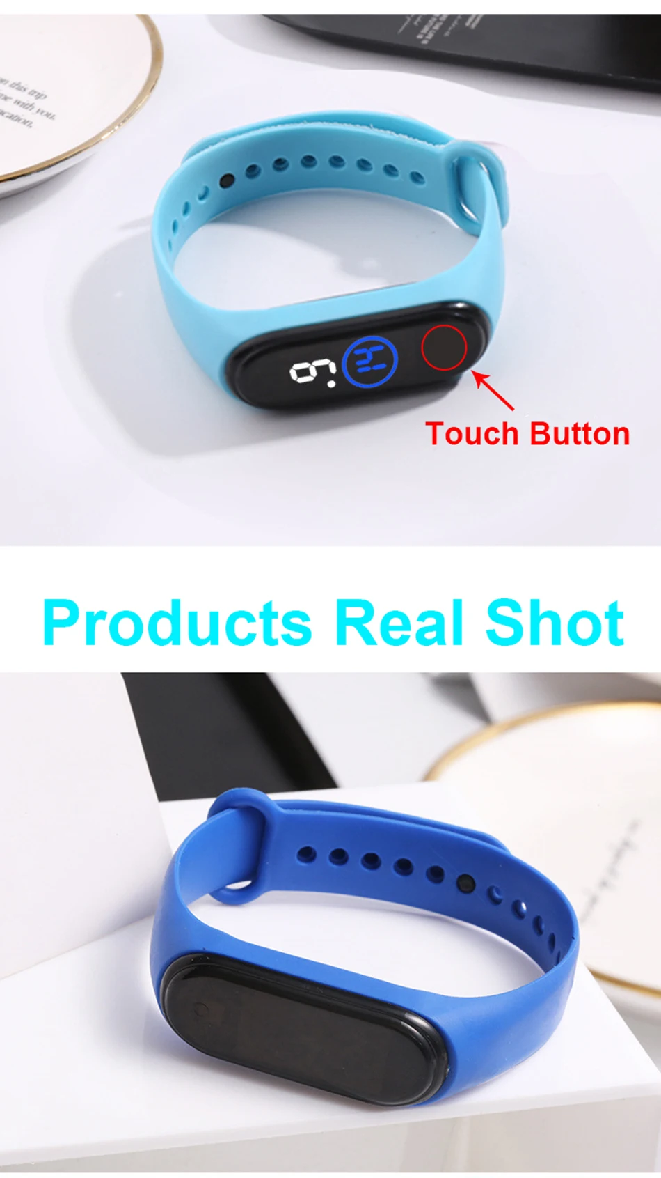 Часы наручные детские электронные, цифровые водонепроницаемые со светодиодным сенсорным дисплеем, с браслетом, подарок для студентов